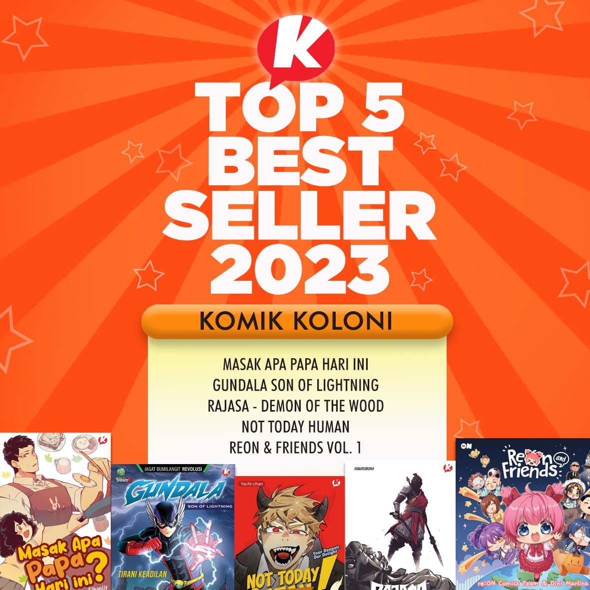 Melalui akun media sosialnya, penerbit m&c! telah memublikasikan judul-judul top 5 best seller komik Indonesia yang telah diterbitkan imprint mereka, yakni KOLONI selama tahun 2023. Inilah top 5 best seller komik Indonesia terbitan KOLONI selama tahun 2023: