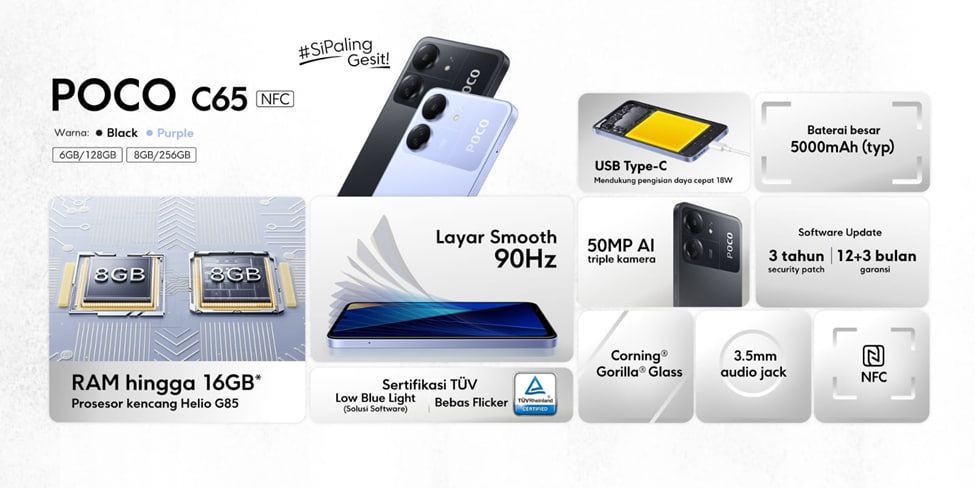 Terjawabnya berbagai kebutuhan anak muda tersebut, nggak lain berkat fitur-fitur unggulan yang diusung oleh POCO C65, sebagai berikut: