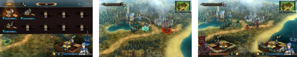Pasukan sekutu dapat ditempatkan dari pangkalan mana pun yang berkibar bendera biru. Setelah ditempatkan, gunakan kursor untuk memindahkan mereka di sepanjang tahap pertempuran.
