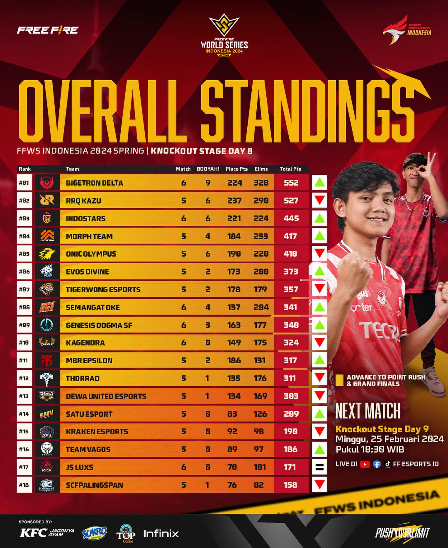 Day 9 Free Fire World Series Indonesia 2024 Spring nanti akan menentukan nasib mereka untuk bisa mendapatkan posisi 12 besar dan maju ke babak selanjutnya!