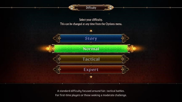Terdapat empat tingkat kesulitan untuk dipilih: Cerita, Normal, Taktis, dan Ahli. Masing-masing tingkat kesulitan menawarkan pengalaman yang sesuai dengan preferensi Anda. - Pertempuran Online: