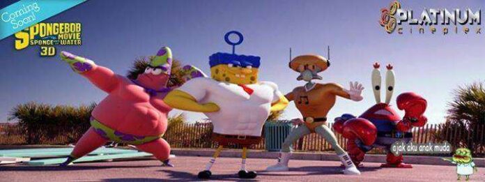 Jaringan bioskop Platinum Cineplex menyatakan akan memutar Movie terbaru dari serial fenomenal SpongeBob SquarePants yang bertajuk SpongeBob: Sponge Out of Water akan diputar pada jaringan bioskop Platinum Cineplex. Sejauh ini, Platinum Cineplex Cibinong Square maupun Platinum Cineplex Magelang telah mengkonfirmasi akan memutar Movie ini. Belum ada konfirmasi lebih lanjut dari Platinum Cineplex cabang Solo dan Sidoarjo.
