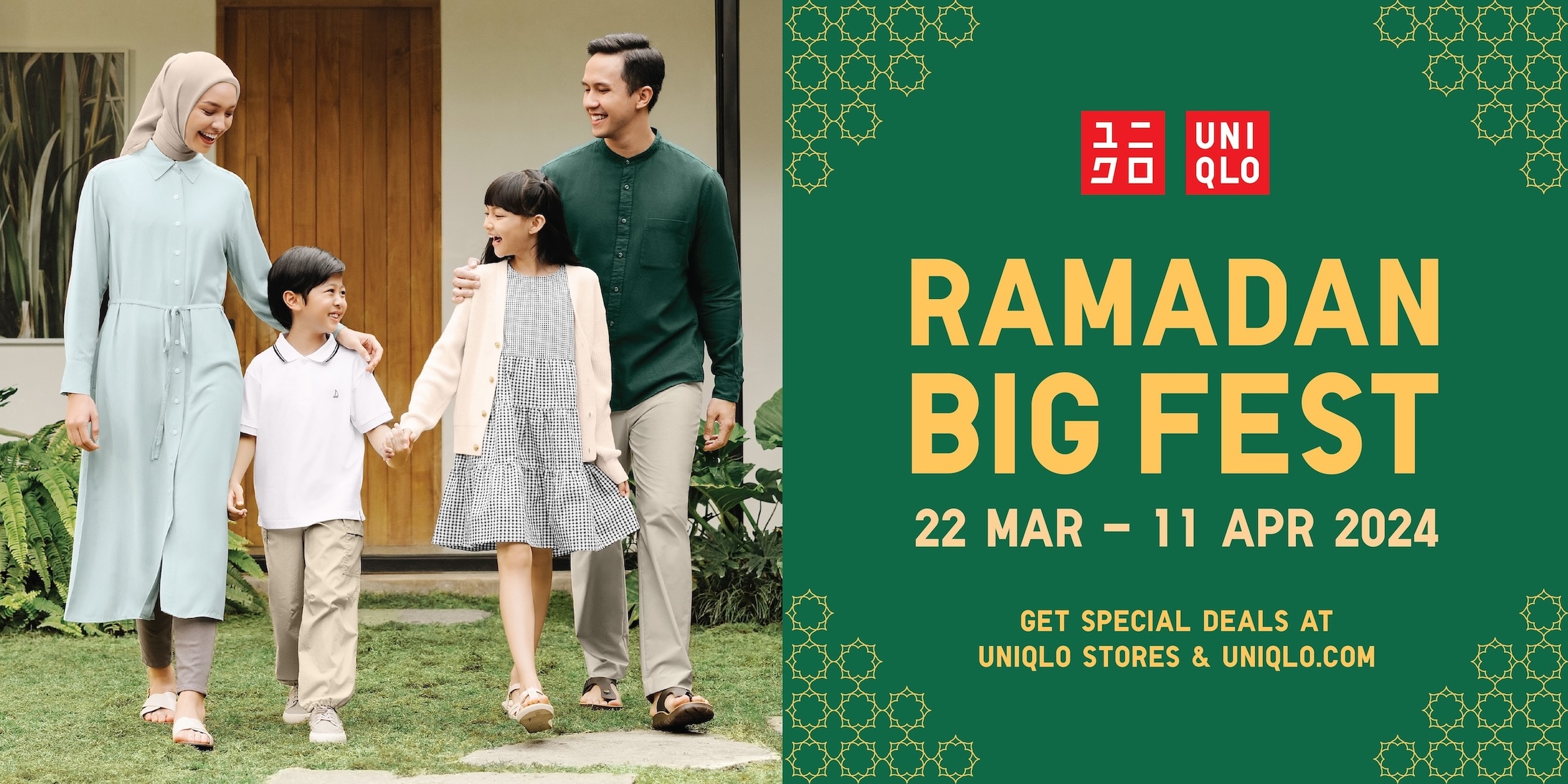 Sambut momen kebersamaan di Hari Raya dengan penuh kenyamanan serta manfaatkan berbagai penawaran menarik dalam semarak Ramadan Big Fest yang bisa Anda nikmati di toko UNIQLO terdekat di kota Anda atau melalui UNIQLO.COM. Jadikan koleksi LifeWear favorit Anda menjadi pilihan untuk menemani momen spesial Hari Raya bersama keluarga dan kerabat terkasih, dan tak lupa mari beri kesempatan kepada lebih banyak orang di sekitar untuk menikmati pakaian berkualitas dan nyaman dalam program Donasi Pakaian UNIQLO.