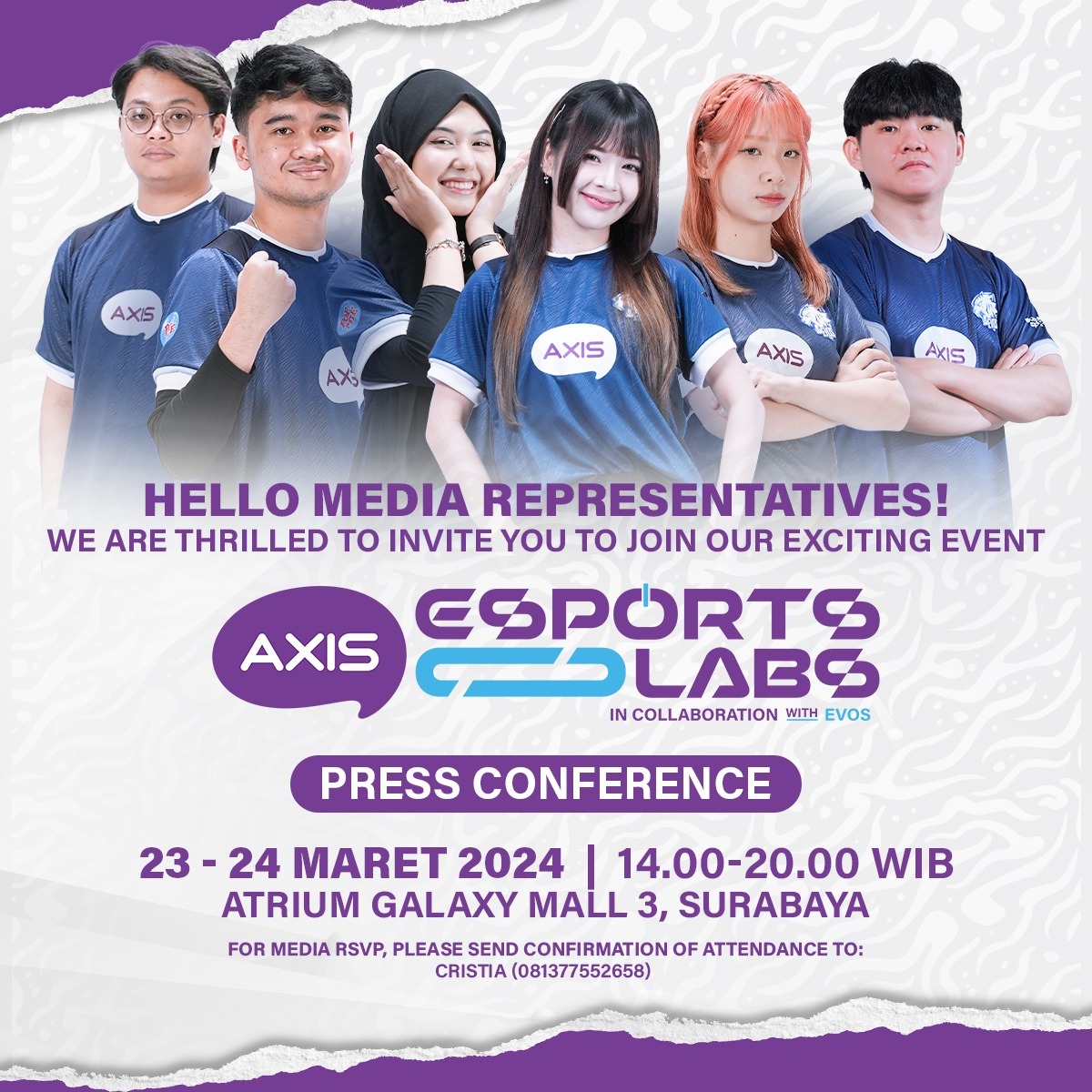 Yuk, mari menjadi bagian dari perayaan euforia esports Indonesia bersama AXIS Esports Labs! Acara ini akan menjelajahi berbagai kota di Indonesia dalam setahun mendatang. Untuk informasi lebih lanjut dan dokumentasi tentang AXIS Esports Labs, kunjungi akun Instagram resmi kami di @evosesports dan @axis_id. Jangan lewatkan kesempatan ini untuk berpartisipasi dan merasakan kegembiraan bersama AXIS Esports Labs 2024!
