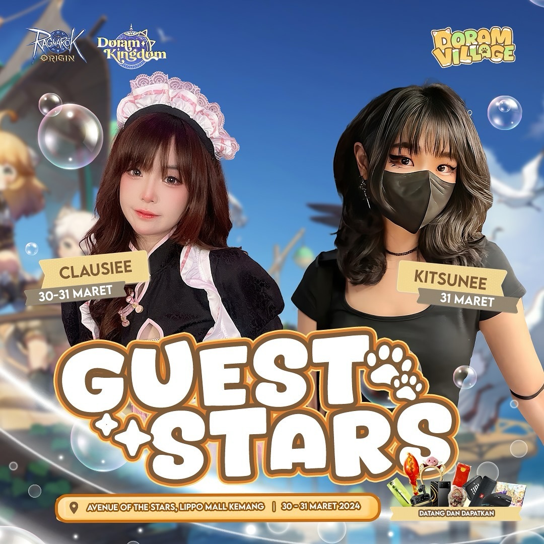 Acara ini akan dimeriahkan oleh Kitsunee dan Claussie, dua cosplayer ternama Indonesia yang sudah punya ratusan ribu followers di sosial media. Pengunjung dapat berfoto bersama, serta mengabadikan momen seru bersama mereka di Doram Village.