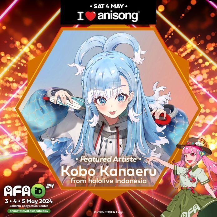 Kini diumumkan juga bahwa VTuber beken Kobo Kanaeru juga akan turut meramaikan ajang Anime Festival Asia Indonesia (AFAID) 2024! Kobo Kanaeru yang sebenarnya belum pernah menyanyi lagu-lagu anisong, namun sudah memiliki sejumlah lagunya sendiri ini akan turut memeriahkan ajang konser I ❤️ Anisong yang akan berlangsung pada hari Sabtu tanggal 4 Mei 2024. Jadi, jangan sampai ketinggalan aksinya ya #Kaoreaders!