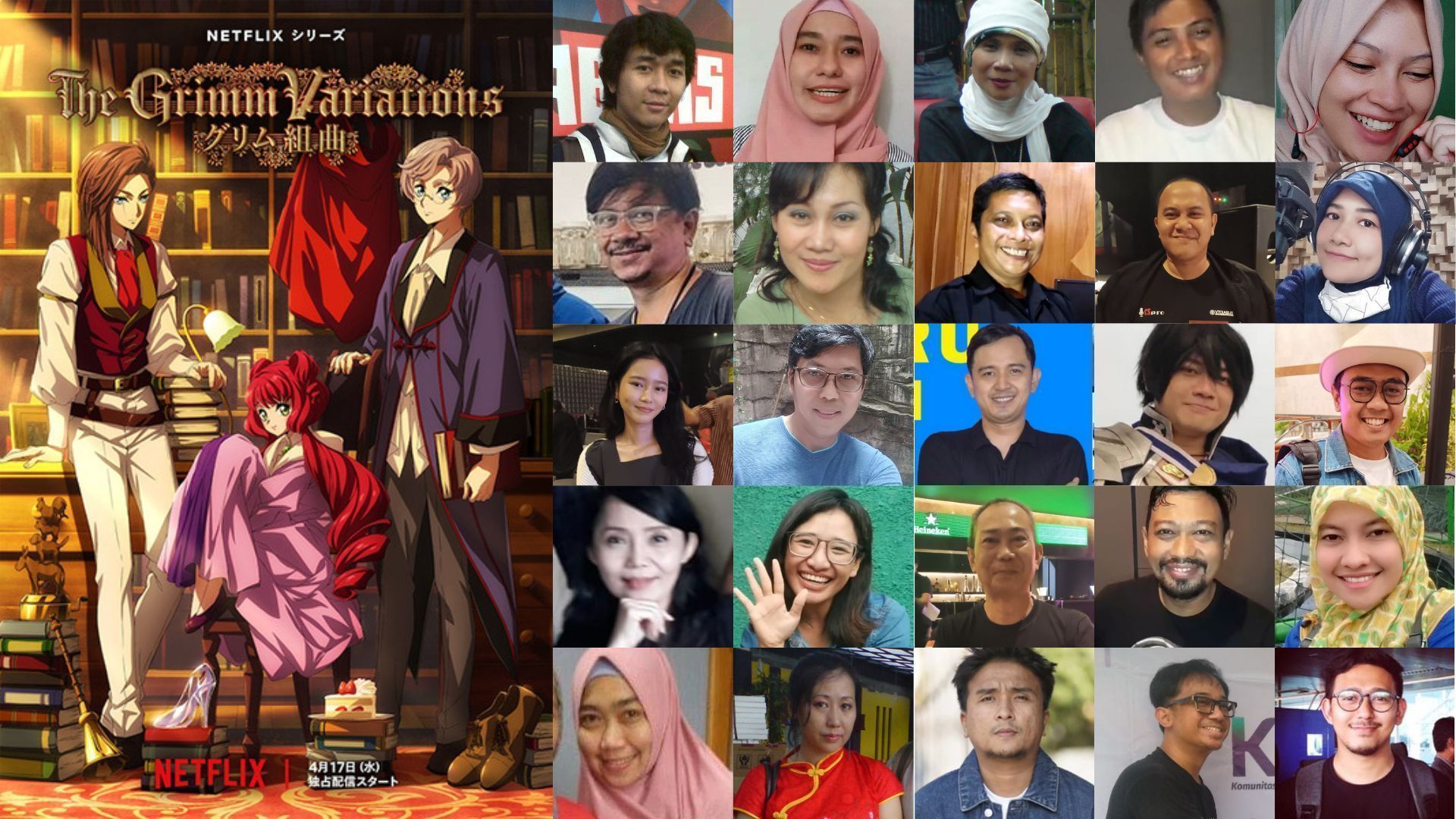 Anime The Grimm Variations juga hadir, lengkap dengan dubbing bahasa Indonesia. Versi dubbing Indonesia ini digarap oleh Studio Fresto. Beatrix Renita Purwiastanty bertindak sebagai pengarah dialog, di mana ia juga turut serta menjadi seiyu di dalamnya. Berikut adalah jajaran seiyu-nya: