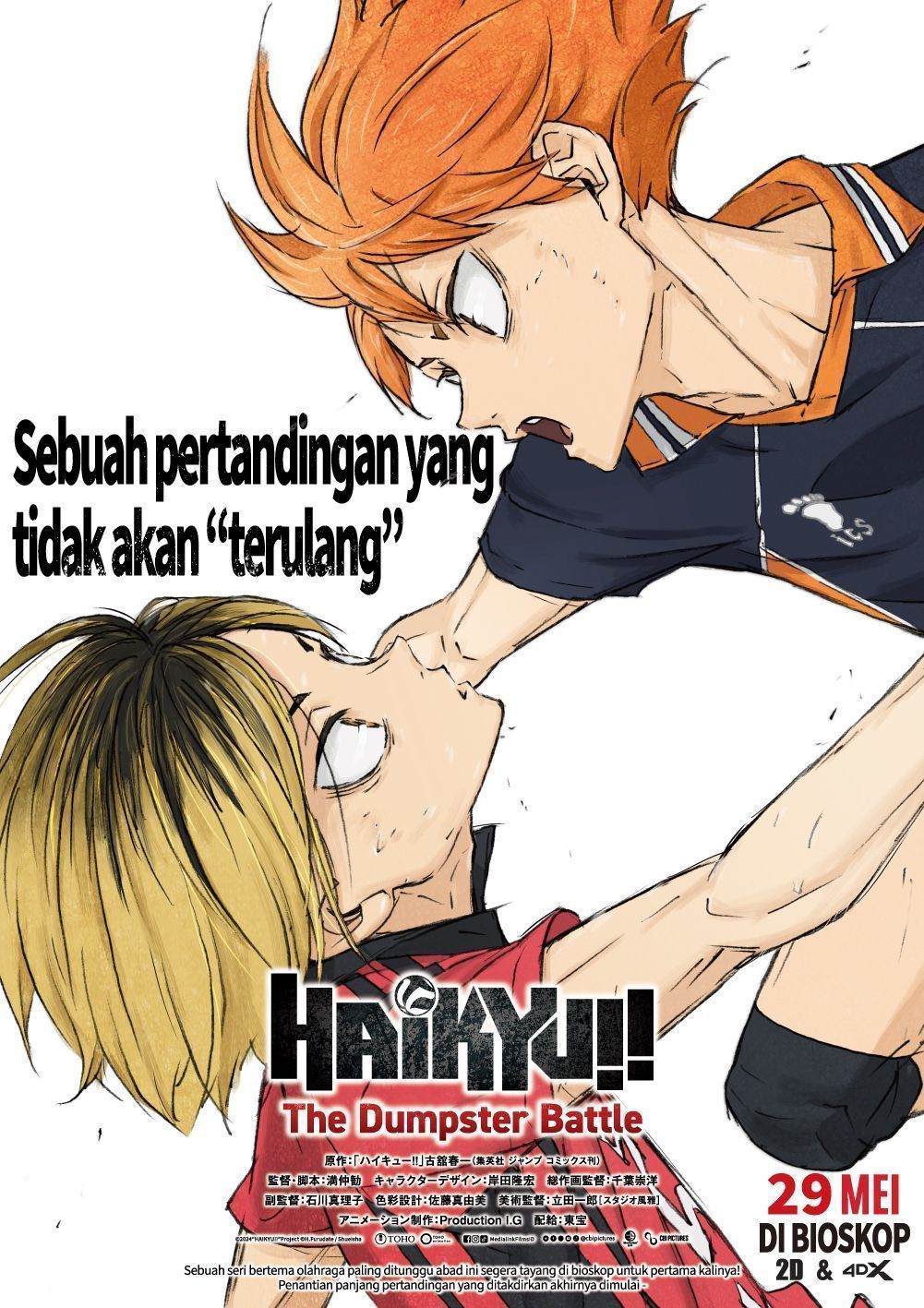 Kini film tersebut akhirnya akan segera tayang di Indonesia. Dengan judul Haikyu!! The Dumpster Battle, jaringan bioskop CGV Cinemas Indonesia telah memastikan akan menayangkan film tersebut mulai tanggal 29 Mei 2024.