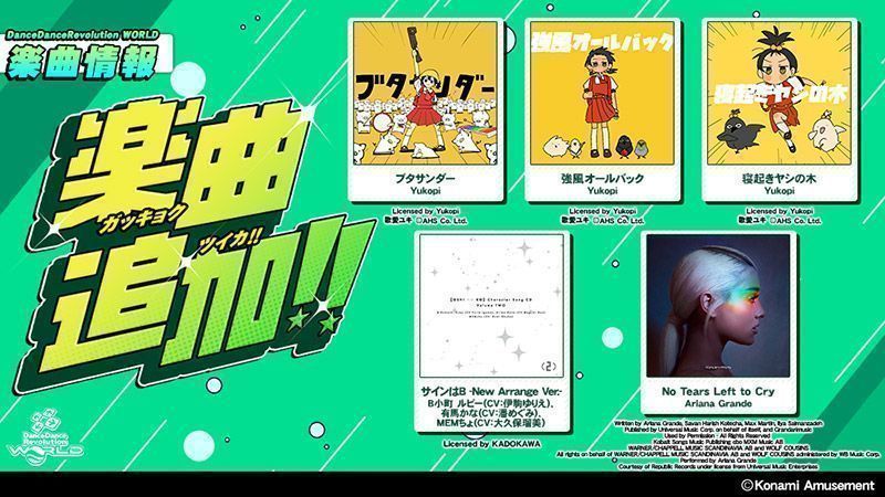 Berikut lagu-lagu dari kategori Anime, Vocaloid dan J-Pop yang hadir di DDR World:
