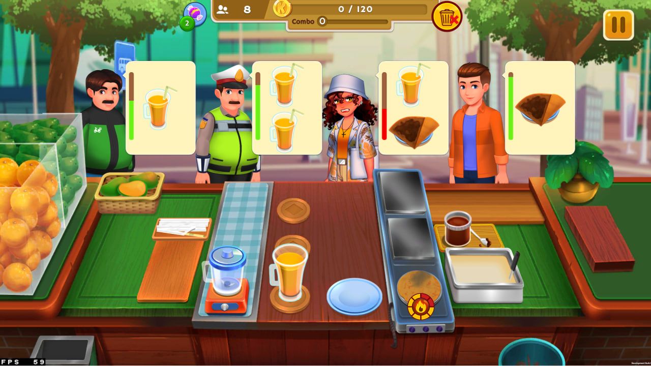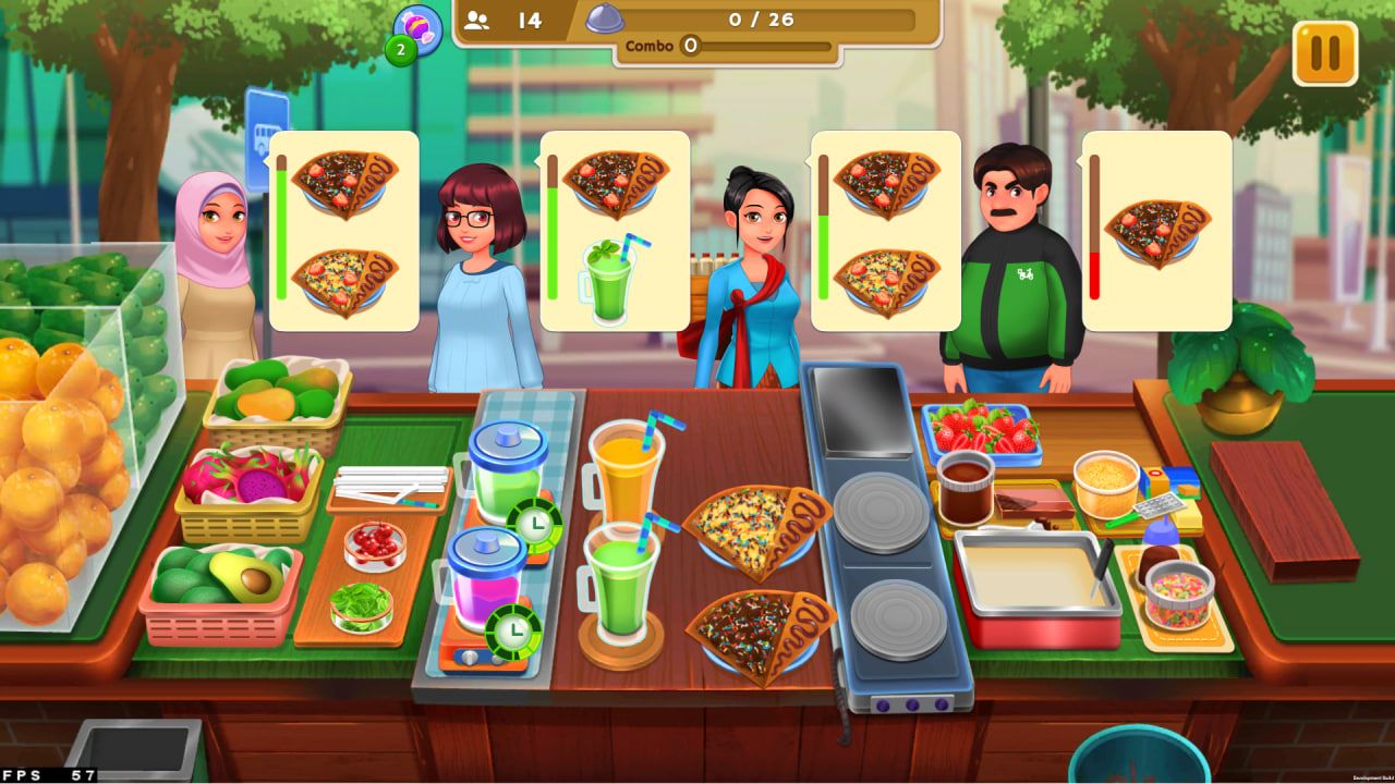 Menu utama di chapter Renata adalah crepes, panganan kue tipis dari Perancis yang renyah dan manis. Sebagai pelengkap, pemain juga bisa menyajikan jus dan smoothies buah yang menyegarkan.