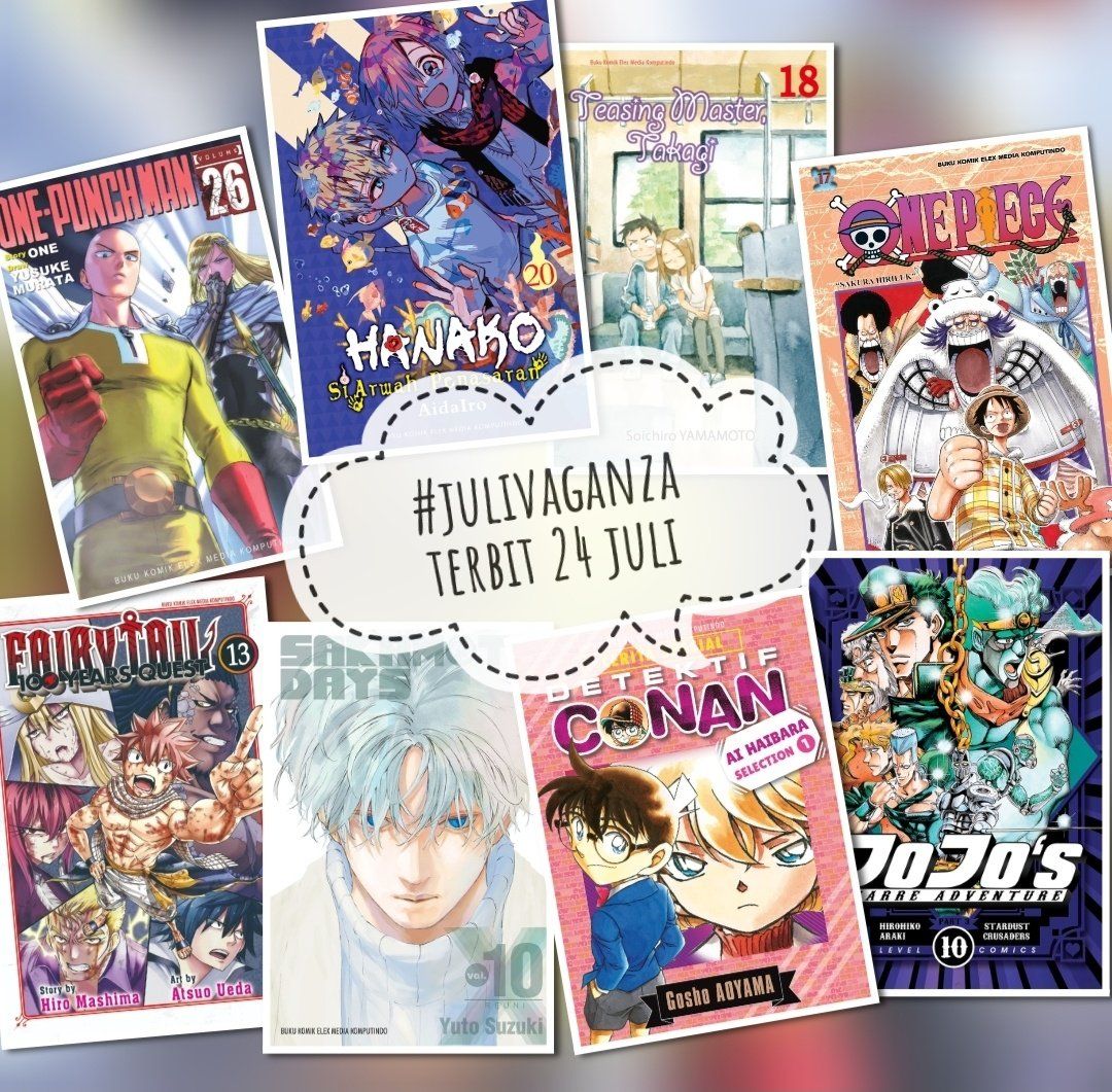 Melalui akun media sosialnya, penerbit Elex Media Komputindo memberikan bocoran mengenai sejumlah komik yang rencananya akan diterbitkan pada tanggal 24 Juli 2024. Beberapa judul ada yang merupakan seri atau volume baru ataupun seri yang diterbitkan ulang. Inilah bocoran komik 24 Juli 2024: