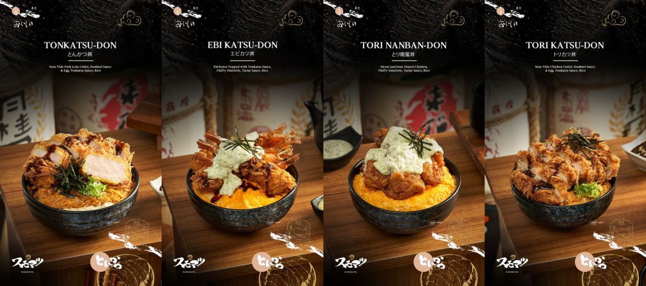 Sebagaimana sudah disebutkan sebelumnya, Sumomatsu menawarkan menu unggulan sejumlah jenis Katsudon. Di antaranya Tonkatsu Don yang berbahan dasar babi, Tori Katsudon yang berbahan dasar ayam katsu, Tori Nanban Don yang berbahan dasar ayam karage yang dibumbui, dan Ebi Katsu Don yang berbahan dasar udang.