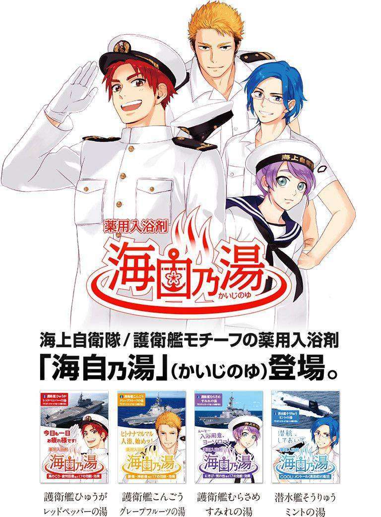 Unsur kapal moe yang diangkat oleh KanColle terkadang menjadikan demam kapal hanya diminati oleh kalangan penggemar pria saja. Namun kali ini, sebuah produsen garam mandi di Jepang menampilkan para kapal sebagai karakter cowok dengan gaya bishonen. Tidak hanya memiliki karakter saja, karakter dari produk ini juga memiliki seiyuu (pengisi suara) nya tersendiri untuk lebih menghidupkan karakter yang ada.