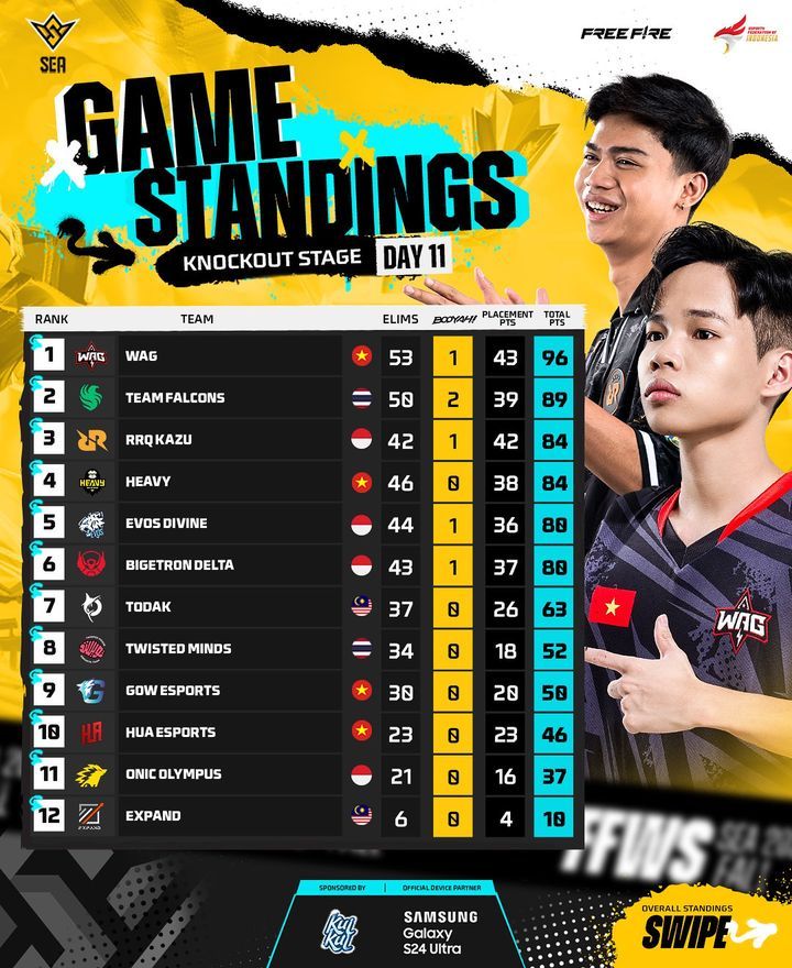 Sementara itu, klasemen harian berhasil dikuasai oleh tim WAG dari Vietnam dan disusul oleh Team Falcons di posisi kedua.