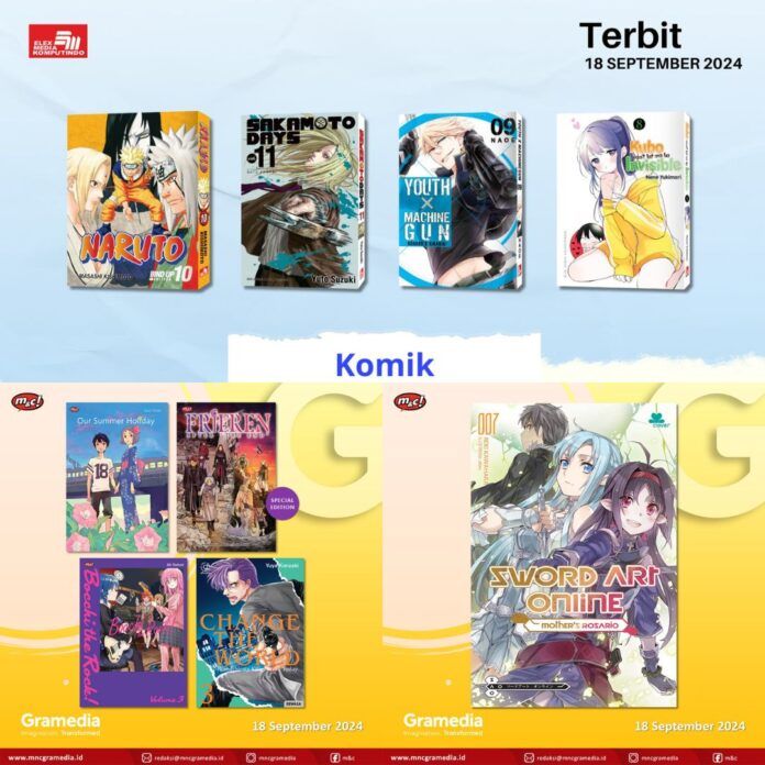 Daftar rencana komik yang akan terbit tanggal 18 September 2024. Judul yang diterbitkan bisa saja berbeda dari yang tercantum di jadwal ini sesuai kebijakan masing-masing penerbit: