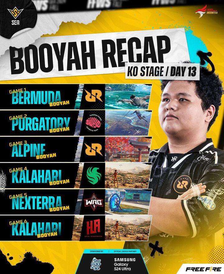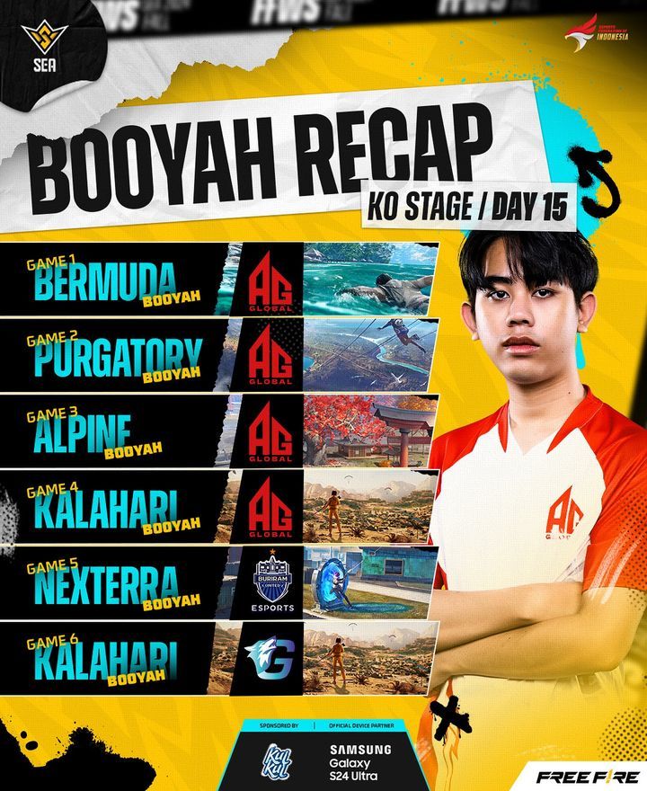 Apakah kelima tim Indonesia akhirnya bisa berangkat ke Surabaya untuk bertempur di fase Grand Final FFWS SEA 2024 Fall? Pertempuran Free Fire World Seres SEA 2024 Fall akan memasuki puncaknya di pekan ke-6 yang akan berlangsung pada 27-29 September 2024!