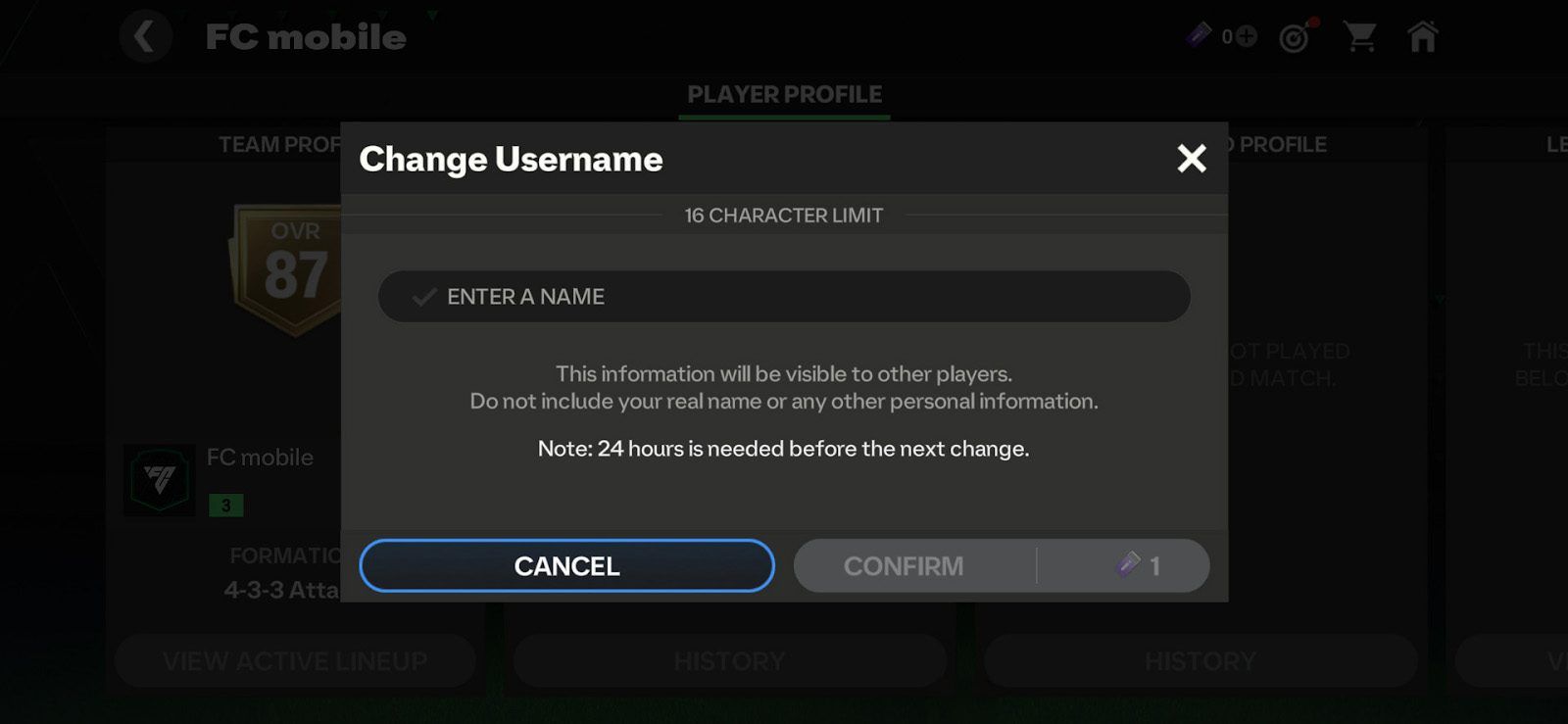 Menjawab banyaknya permintaan dari komunitas, EA SPORTS FC Mobile dengan senang hati menghadirkan fitur Change Username. Pemain dapat mengubah nama pengguna mereka satu kali, dan dapat diubah kembali di bulan depan melalui store. Jadi, pastikan untuk memilih nama yang tepat!