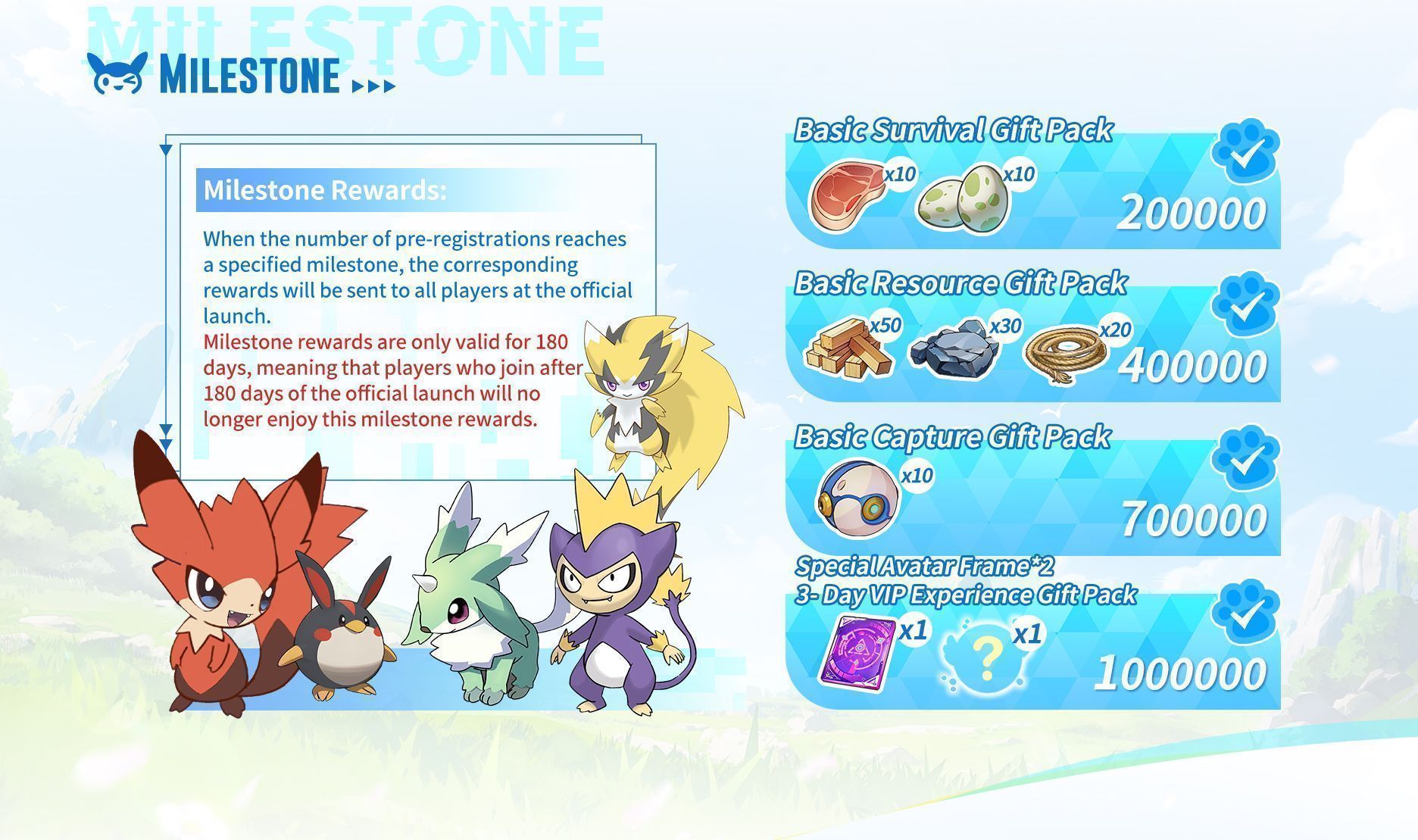 Dukungan dari para penggemar menjadi peran penting dalam pengembangan Miraibo GO. Dengan lebih dari 1 juta pendaftar pada tahap pra-registrasi, berbagai hadiah eksklusif akan diberikan kepada seluruh pemain. Login sekarang juga dan dapatkan hadiah fantastis yang akan menambah keseruanmu bermain Miraibo GO!
