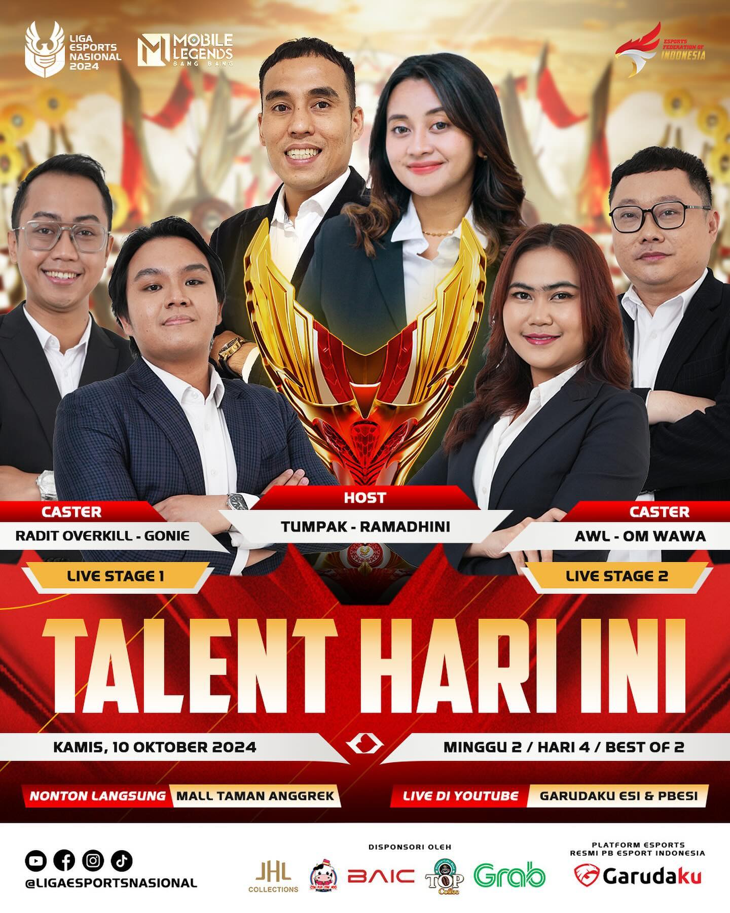 Selain persaingan antar tim, suasana acara akan semakin hidup dengan kehadiran host dan caster-caster yang sudah tidak asing lagi di dunia esports. Tumpak dan Ramadhini akan memandu acara sebagai host, memberikan informasi menarik dan interaksi seru dengan penonton sepanjang pertandingan.