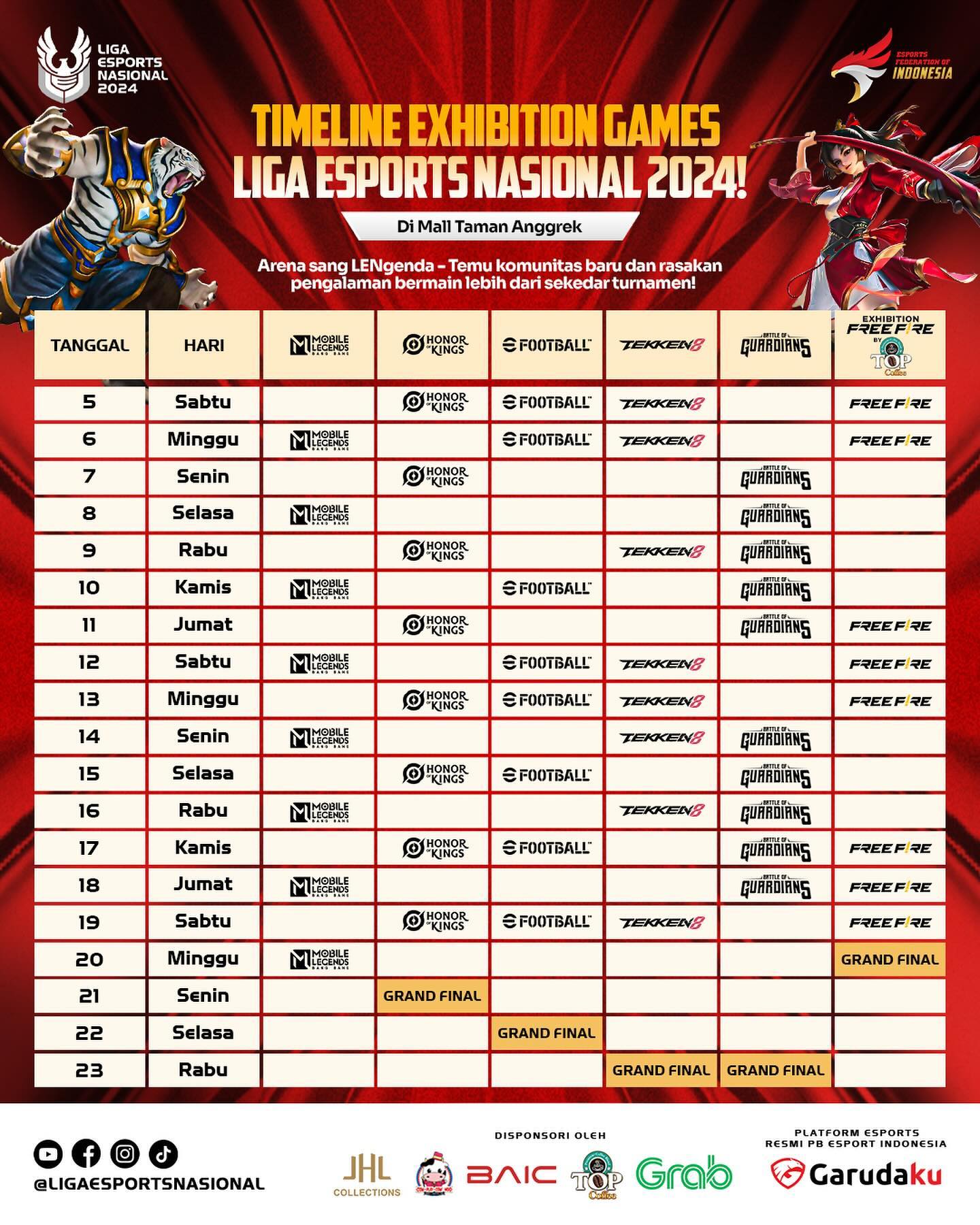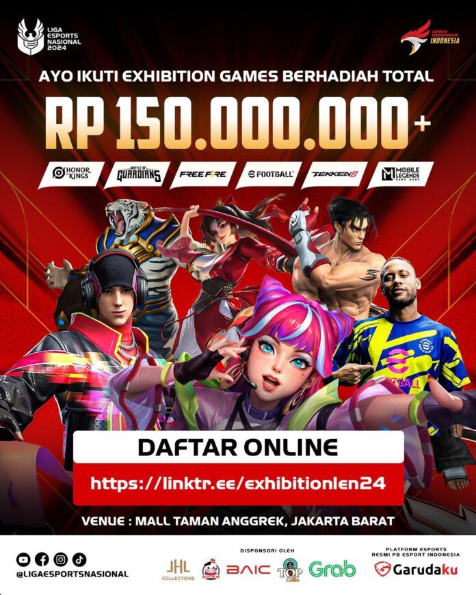 PBESI dan Garudaku selaku penyelenggara Liga Esports Nasional 2024 menghadirkan exhibition match dengan total hadiah sebesar Rp 150.000.000,-. Game yang dipertimbangkan di exhibition booth adalah Tekken 8, eFootball, Mobile Legends: Bang Bang, Honor Of Kings, Free Fire dan Battle Of Guardians.