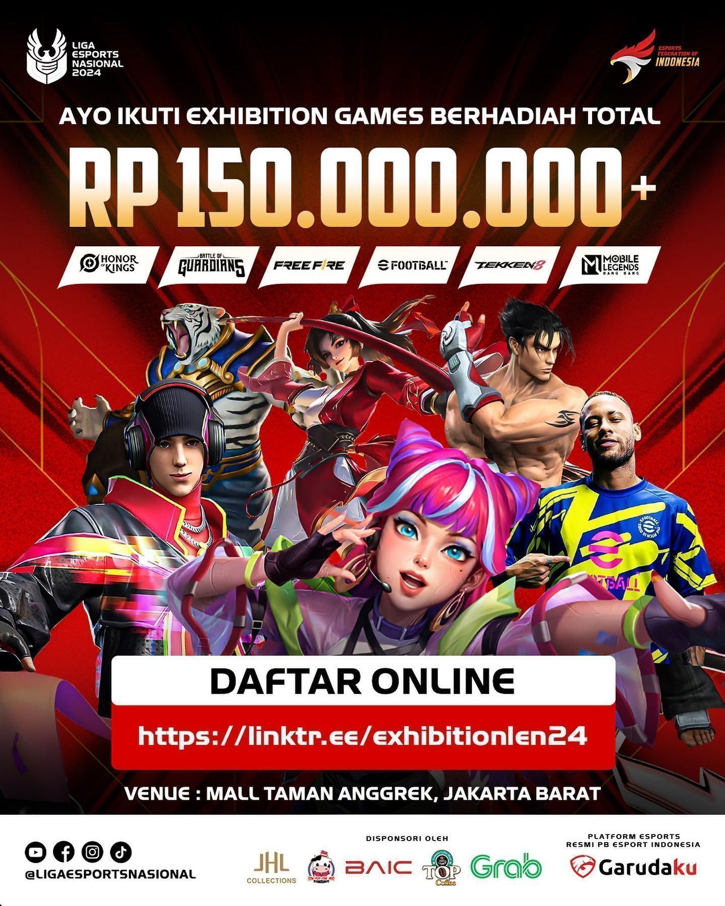 Yuk #Kaoreaders yang merasa jago main game di game manapun? Ayo ikuti exhibition match di Liga Esports Nasional 2024 dan buktikan bahwa bisa menjadi juara exhibition di tahun ini.