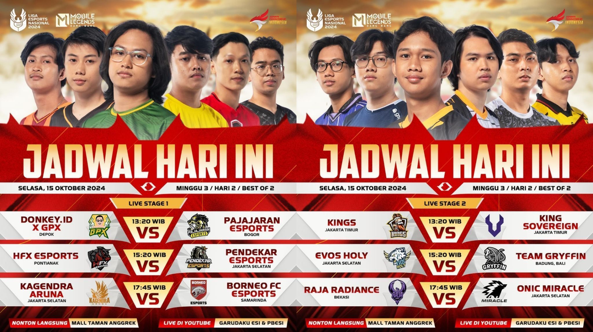 - HFX Esports vs Pendekar Esports – 15.20 WIB