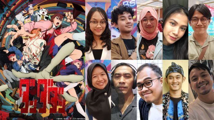 DANDADAN merupakan anime terbaru yang tayang di Jepang mulai bulan Oktober 2024 ini. Anime ini telah didistribusikan oleh Muse Indonesia, dan saat ini sudah bisa ditonton dengan dubbing Indonesia di sejumlah platform. Dubbing Indonesia dari anime ini digarap oleh ATM Studio. Berikut adalah jajaran seiyu-nya: