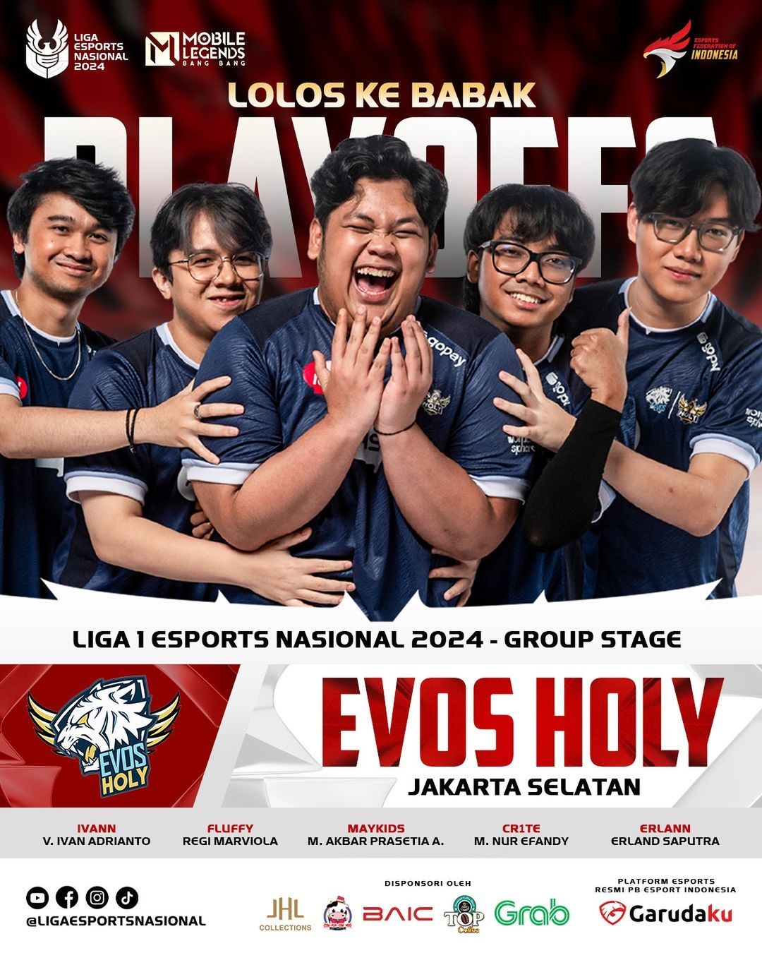 EVOS Holy kembali membuktikan diri sebagai tim paling dominan di musim ini dengan mengakhiri fase grup tanpa kekalahan (10 kemenangan, 3 hasil imbang). Diisi oleh IVANN, FLUFFY, ERLANN, CR1TE, dan MAYKIDS. Roster yang dipenuhi pemain bintang dan pengalaman, EVOS Holy tampil sebagai kekuatan tak terbendung. MAYKIDS yang juga pernah menjadi runner-up di Liga Esports Nasional sebelumnya yang kali ini akan membawa semangat juara yang sangat membara di tim barunya ini. Kombinasi permainan disiplin dan koordinasi mereka membuat EVOS Holy favorit juara dan mereka akan langsung berhadapan dengan pemenang match 1 di upper bracket.
