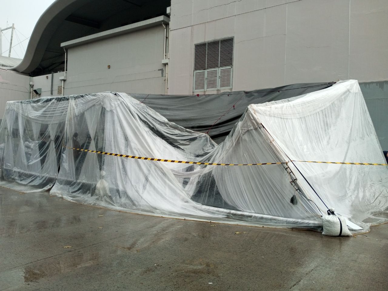 Menjelang sore sekitar jam 3 sore, area Pagedangan diguyur hujan deras. Para cosplayer dan fotografer yang awalnya melakukan pemotretan di area luar ICE pun masuk ke dalam venue. Hujan deras ini menyebabkan musala di loading dock 9 mengalami kerusakan. Pengunjung yang ingin menunaikan salat pun harus menuju masjid di dekat Hall 5, yang berjarak sekitar 500 meter dari venue Comifuro di hall 10.