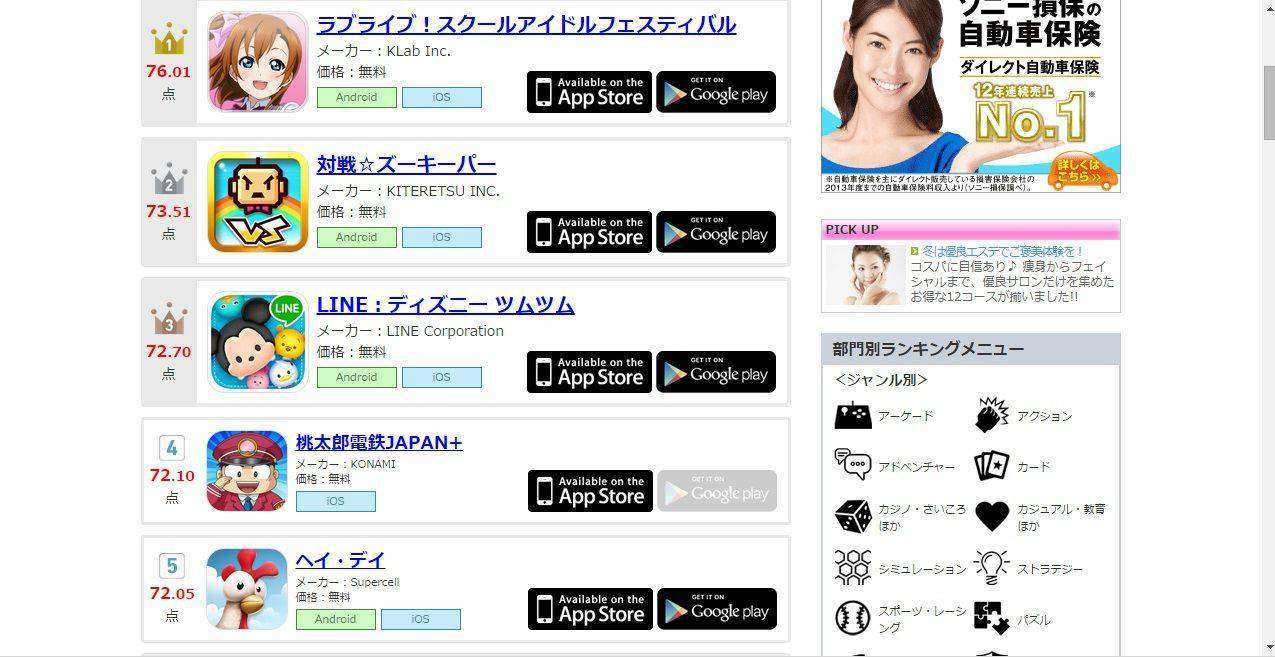 Berdasarkan hasil survei kepuasan yang dikeluarkan oleh Oricon, gim LoveLive! School Idol Festival (LLSIF) menjadi gim ponsel pintar nomor satu di Jepang pada periode musim dingin 2015. LLSIF meraih nilai kepuasan sebesar 76.01, disusul oleh gim Taisen☆Zukipa dengan nilai 73.51, dan LINE: Disney Tsum Tsum sebesar 72.70. Posisi keempat diisi oleh Momotaro Dentetsu JAPAN+ (Momotaro Railway JAPAN+) dengan nilai sebesar 72.10, dan posisi kelima diisi oleh Hay Day dengan nilai sebesar 72.05. Selain secara keseluruhan, game LLSIF juga unggul di demografis pemain laki-laki (74.92) dan perempuan (78.98). Survei tersebut dilakukan oleh Oricon kepada 15.000 pengguna ponsel pintar selama tiga bulan.