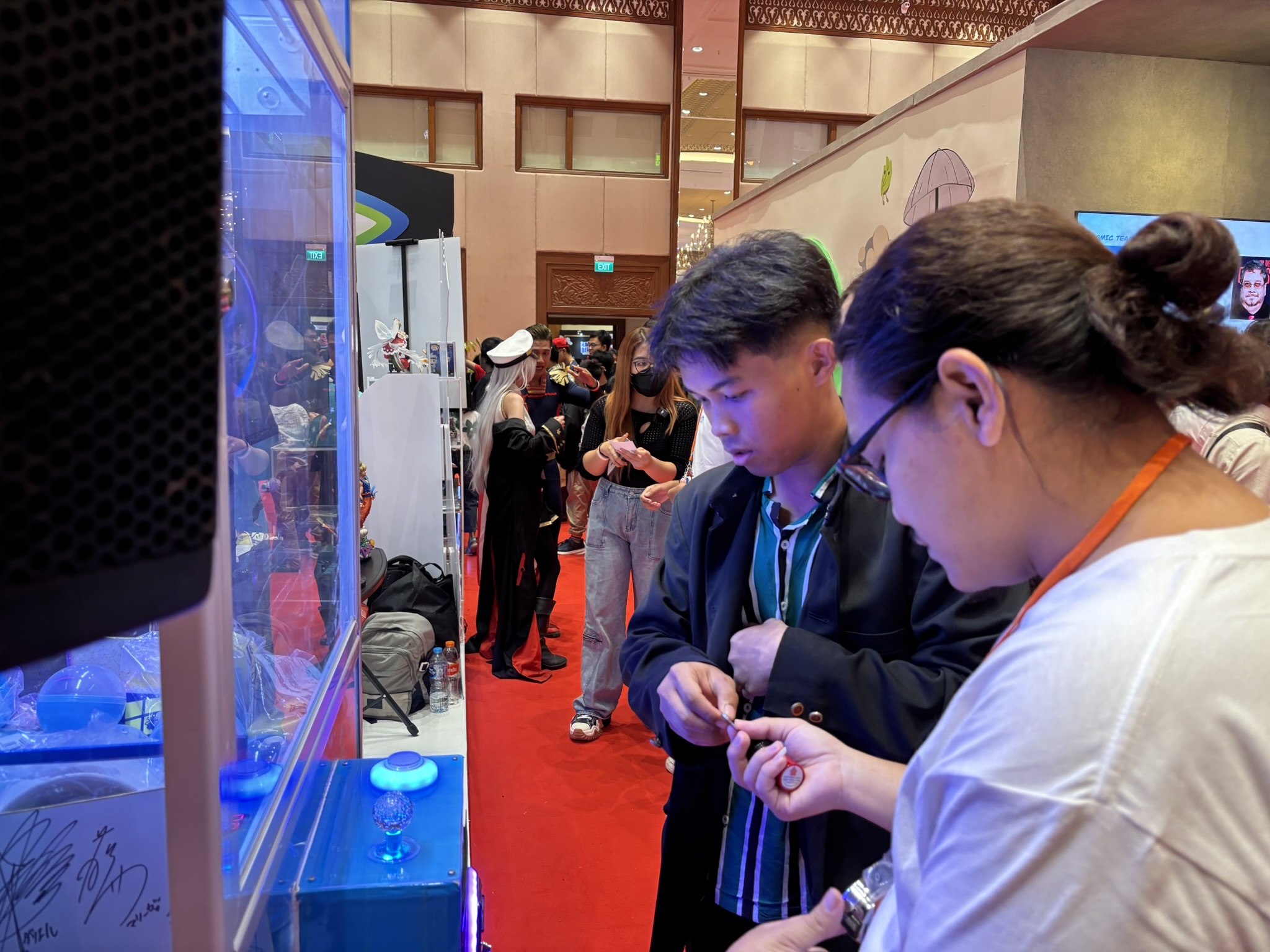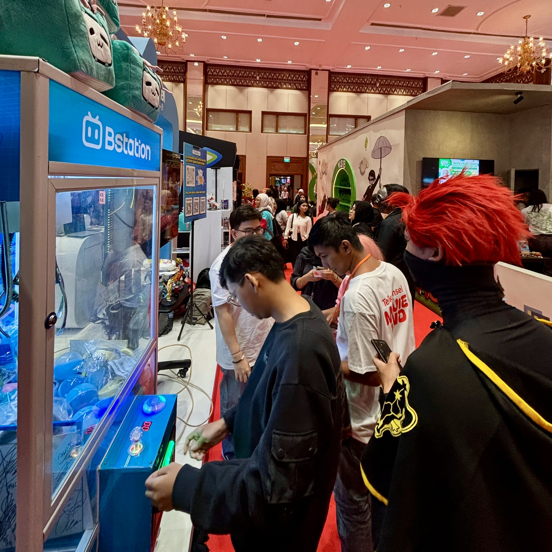 Booth ini menawarkan berbagai aktivitas menarik seperti permainan crane yang memungkinkan pengunjung memenangkan hadiah lucu seperti boneka maskot Bstation. Tak hanya itu, ada juga koleksi merchandise eksklusif dari serial populer yang bisa didapatkan. Antusiasme pengunjung pun sangat meriah saat mencoba peruntungan gacha di mesin crane.
