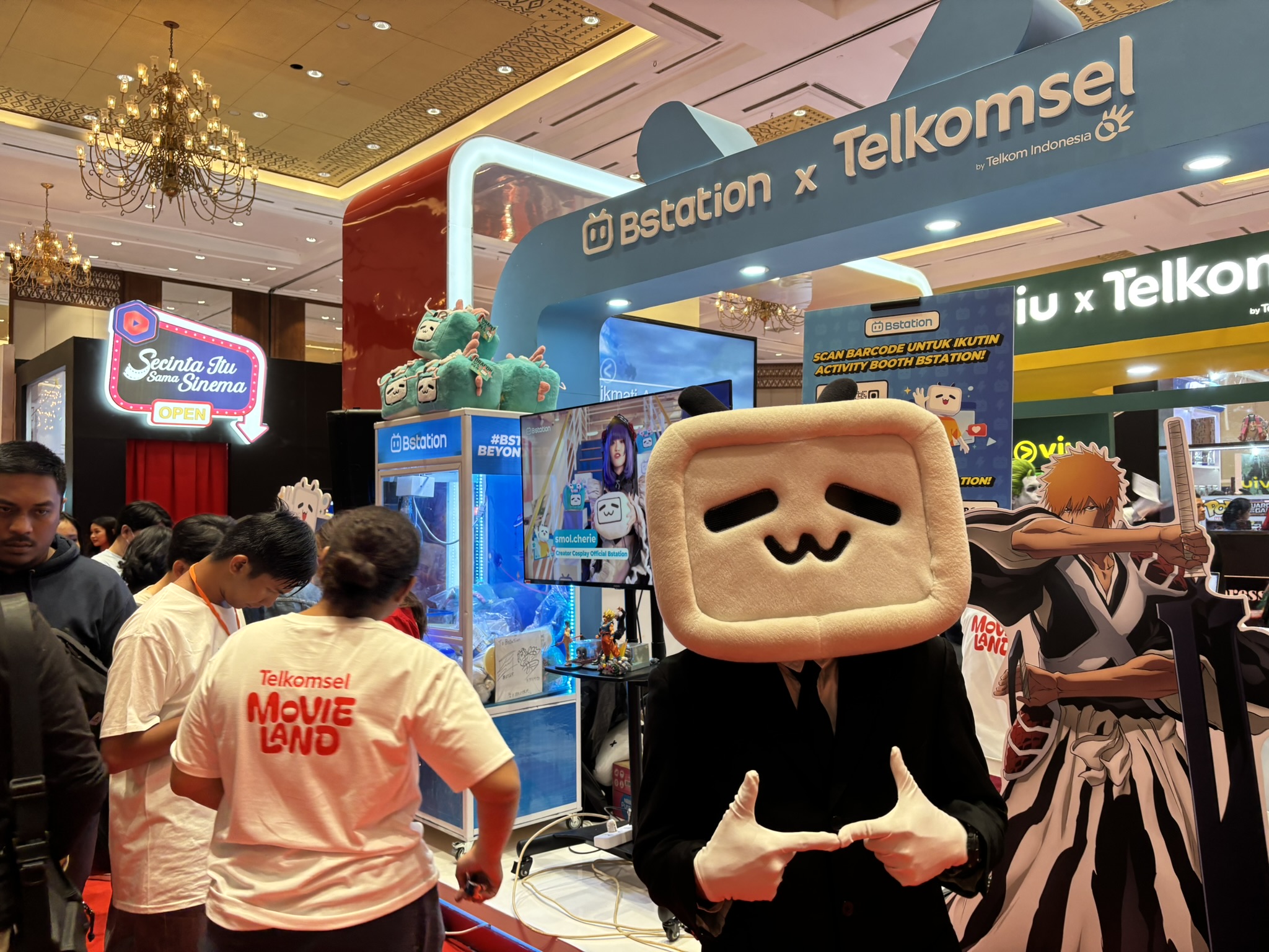 Bstation x Telkomsel Movie Land juga menyediakan area foto yang menampilkan elemen dari dunia anime dan film. Beberapa karakter ikonik berkeliaran di sekitar booth, memberikan kesempatan foto bersama bagi pengunjung. Hal ini menciptakan suasana yang semakin meriah dan mendekatkan para penggemar dengan dunia hiburan favorit mereka.
