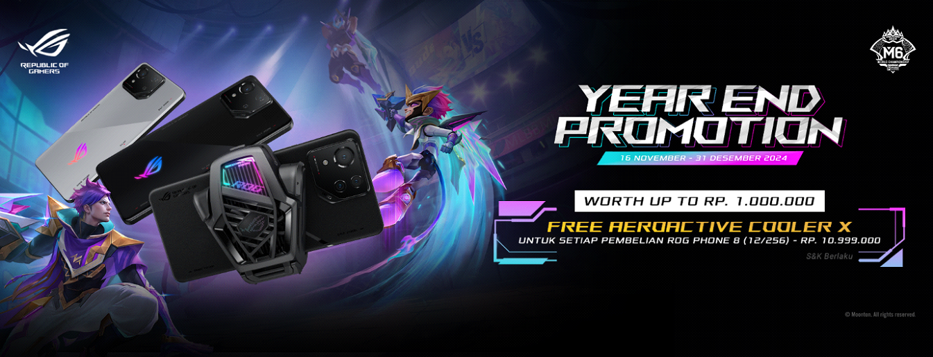 Bersamaan dengan kemeriahan ROG x M6 Watch Party, ASUS Indonesia dengan bangga mengumumkan ASUS ROG Phone 8 Year End Festival. Mulai dari sekarang hingga 31 Desember 2024, konsumen yang membeli varian ROG Phone 8 dengan RAM 12GB dan storage 256GB akan mendapatkan AeroActive Cooler X tanpa biaya tambahan. Promosi dalam waktu terbatas ini tidak hanya meningkatkan pengalaman bermain game bagi pengguna, tetapi juga menunjukkan komitmen ASUS untuk menghadirkan teknologi terbaik dengan harga yang terjangkau.