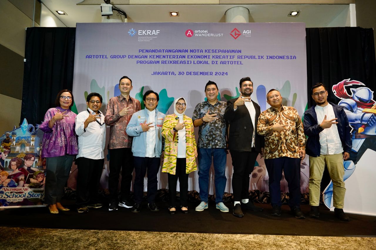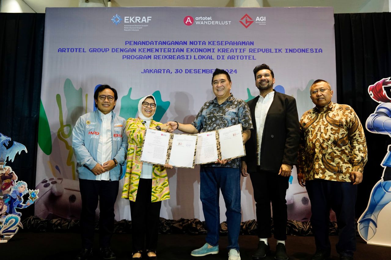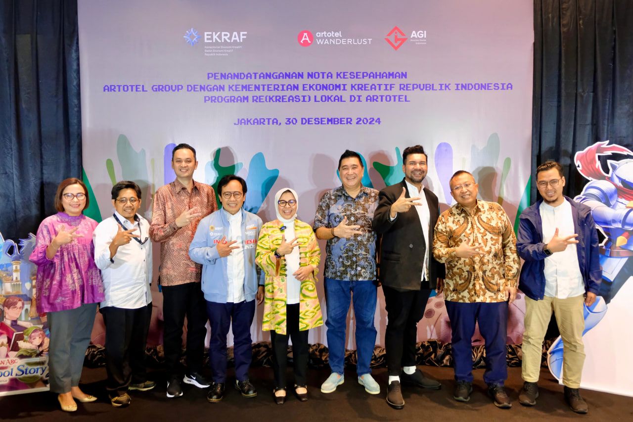 Kementerian Ekonomi Kreatif/Badan Ekonomi Kreatif (Kemenekraf/Bekraf) dengan Artotel Indonesia sepakat berkolaborasi melalui penandatanganan nota kesepahaman bersama (Memorandum of Understanding/MoU) untuk mempromosikan gim Indonesia saat momen liburan Natal 2024 dan Tahun Baru 2025. Penandatanganan dilaksanakan di ARTOTEL Thamrin Jakarta, Senin (30/12/2024) oleh Plt. Sesmenekraf/Sestama Bekraf, Dessy Ruhati, dengan Direktur PT Artotel Indonesia (Artotel Group), Eduard Rudolf Pangkerego. Kolaborasi ini dikemas dalam bentuk program bertajuk Re(Kreasi) Lokal yang menghadirkan fasilitas gim lokal asli buatan Indonesia untuk dapat dimainkan di jaringan hotel Artotel Group.