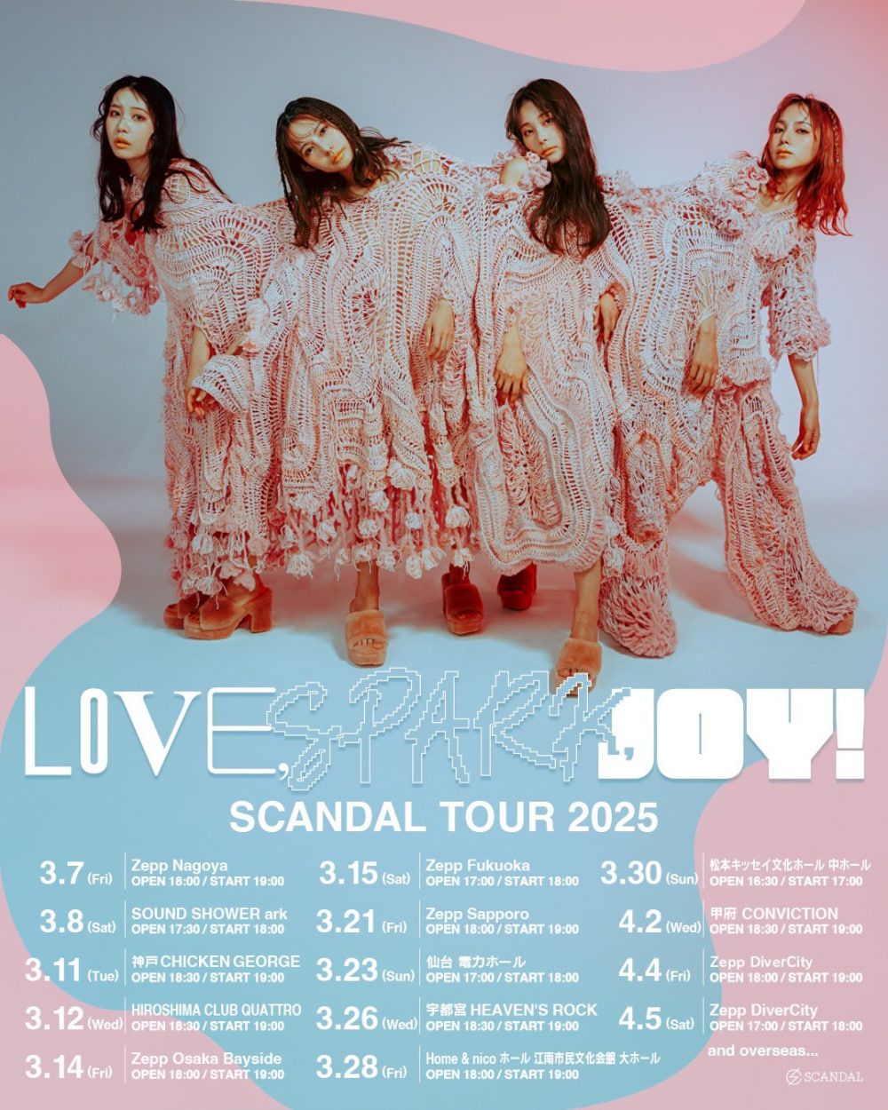 Tak lupa, grup musik ini juga akan menggelar tur konser bertajuk Love Spark Joy! SCANDAL Tour 2025 selama tahun 2025 ini.