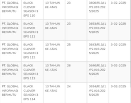 Kini terungkap bahwa GTV rupanya memang cukup “niat” menayangkan anime Black Clover ini. Hal ini terlihat melalui data dari Lembaga Sensor Film di mana GTV baru saja membeli lagi tambahan episode anime ini untuk ditayangkan. GTV kini tercatat sudah memiliki tak kurang dari 114 episode Black Clover yang memiliki total jumlah episode hingga 170 episode ini. Proses dubbing animenya sendiri juga masih berjalan.