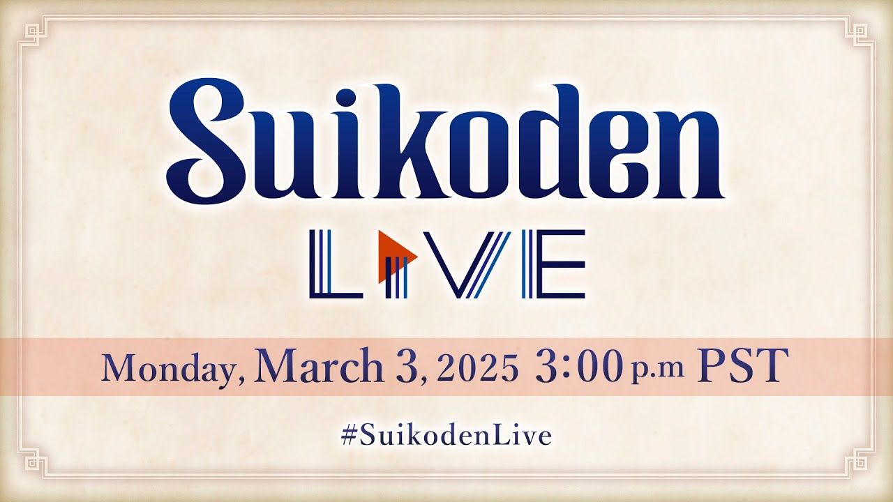Acara yang diadakan pada 4 Maret 2025 dan berlangsung selama satu jam ini menampilkan pertunjukan orkestra dari musik ikonik Suikoden, wawancara dengan tim pengembang, dan menampilkan proses di balik layar bersama para komposer dan seniman yang direkrut untuk memperluas jangkauan waralaba Suikoden dalam beberapa tahun mendatang.