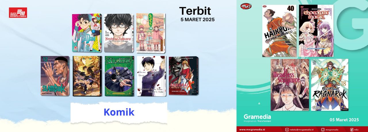 Daftar rencana komik yang akan terbit tanggal 5 Maret 2025. Judul yang diterbitkan bisa saja berbeda dari yang tercantum di jadwal ini sesuai kebijakan masing-masing penerbit: