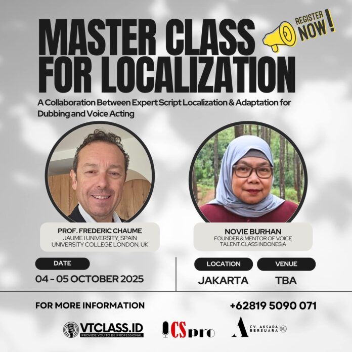 Bagi para penerjemah, ataupun insan-insan yang berminat atau tertarik pada industri penerjemahan terutama penerjemahan untuk dubbing, VTClass.ID berencana untuk mengundang Professor Frederic Chaume pada bulan Oktober 2025 mendatang. Kelas akan digelar selama 2 hari pada tanggal 4-5 Oktober 2025, bertempat di Jakarta, dan akan diselenggarakan secara dwibahasa dengan dukungan juru bahasa (interpreter).