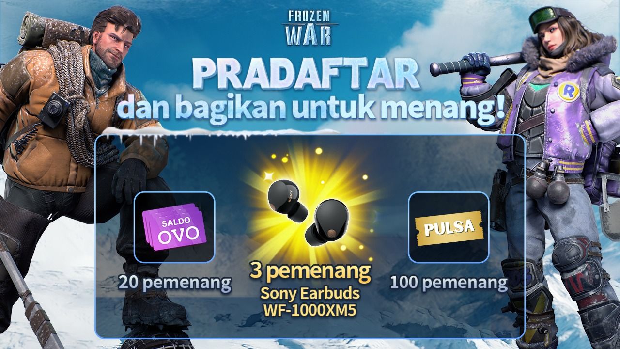 Hanya dengan membagikan postingan pre-register Frozen War di Facebook pribadi dan tag 3 teman di kolom komentar, peserta berpeluang memenangkan pulsa, saldo OVO, atau pun Earbuds TWS Sony. Pemain juga bisa menunjukkan kreativitas mereka di event Cosplay low-budget yang akan berpeluang memberi saldo OVO sebagai hadiah utamanya.