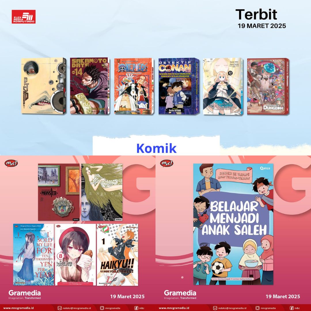 Daftar rencana komik yang akan terbit tanggal 19 Maret 2025. Judul yang diterbitkan bisa saja berbeda dari yang tercantum di jadwal ini sesuai kebijakan masing-masing penerbit:
