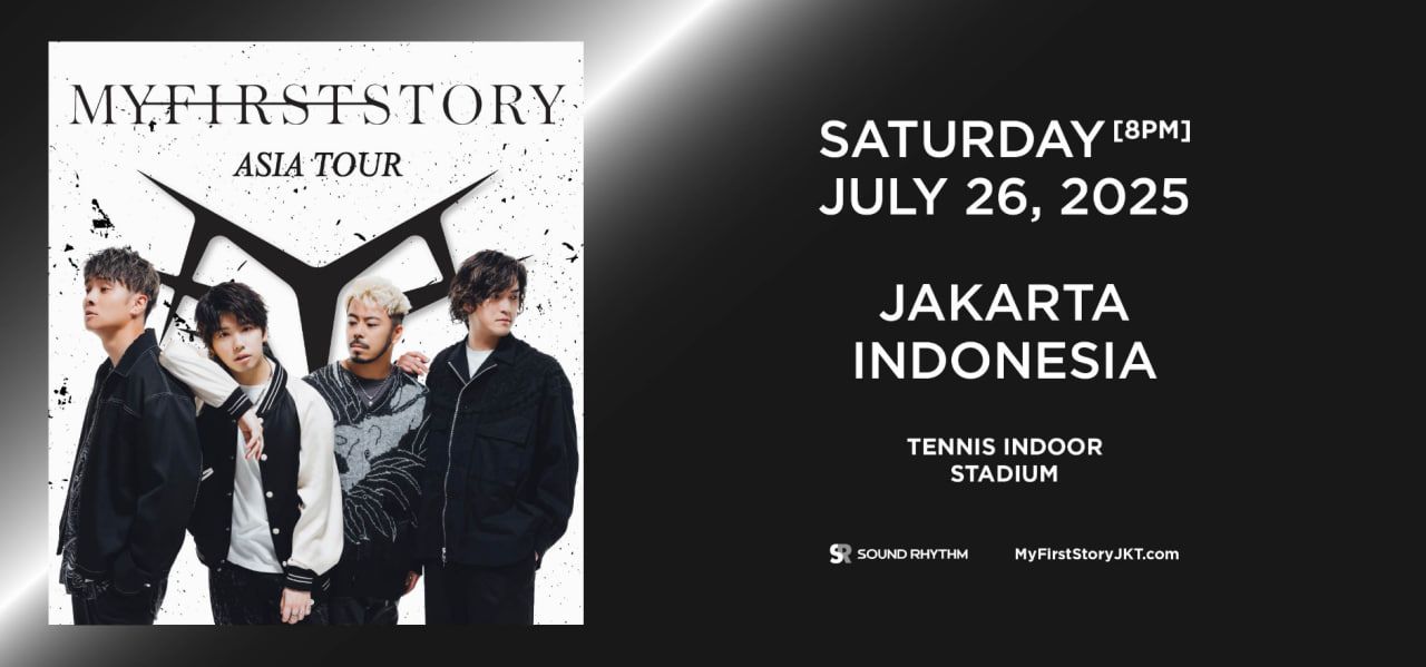 Satu lagi band Jepang akan tampil di tanah air. MY FIRST STORY, salah satu band Jepang yang tengah naik daun akan manggung di Indonesia! Melalui rilis resmi dari promotor Sound Rhythm, konser mereka yang bertajuk “MY FIRST STORY LIVE IN JAKARTA 2025” akan digelar pada Sabtu, 26 Juli 2025 di venue Tennis Indoor Senayan, Jakarta!