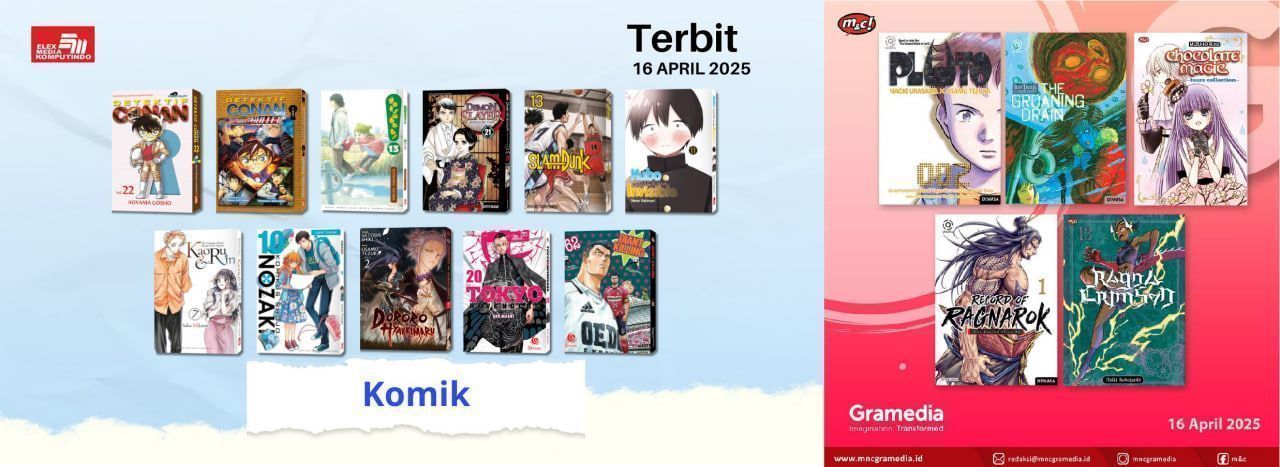 Daftar rencana komik yang akan terbit tanggal 16 April 2025. Judul yang diterbitkan bisa saja berbeda dari yang tercantum di jadwal ini sesuai kebijakan masing-masing penerbit: