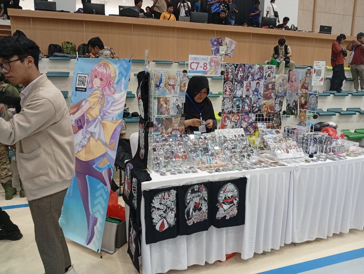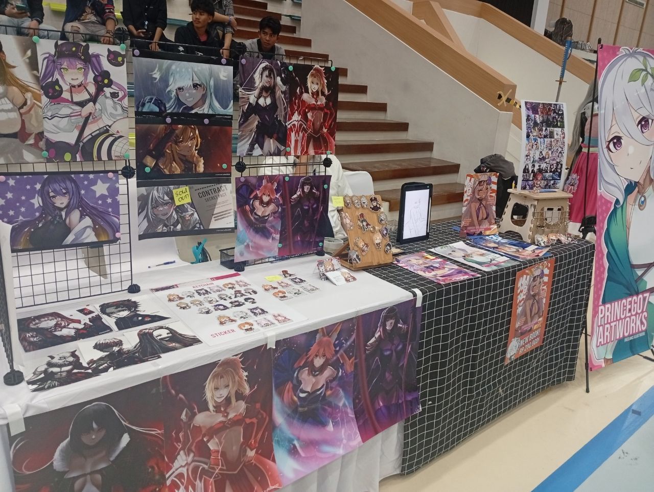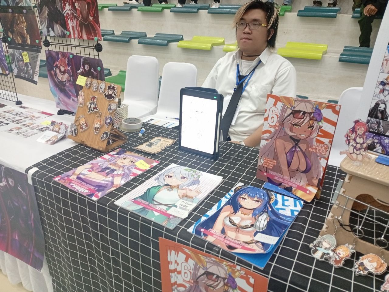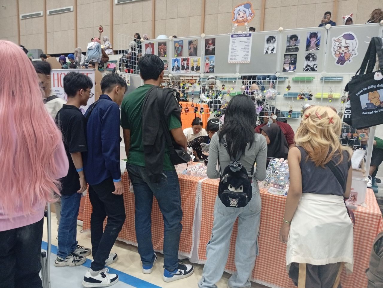 Di ketiga booth mereka itu, mereka banyak menampilkan berbagai karya gambar buatan mereka tersebut mulai dari sticker, pin, poster, gantungan kunci, dan bahkan fanbook artwork bernama HoyoColle (kumpulan artwork dari berbagai game buatan Hoyoverse) yang bisa ditemukan di booth ketiga (B3) dengan harga 50k. Bagi kalian yang ingin bergabung ke komunitas ini dan melihat berbagai aktivitas dari kelompok ini silahkan untuk mengfollow di akun IG mereka di @saturdraw.art.
