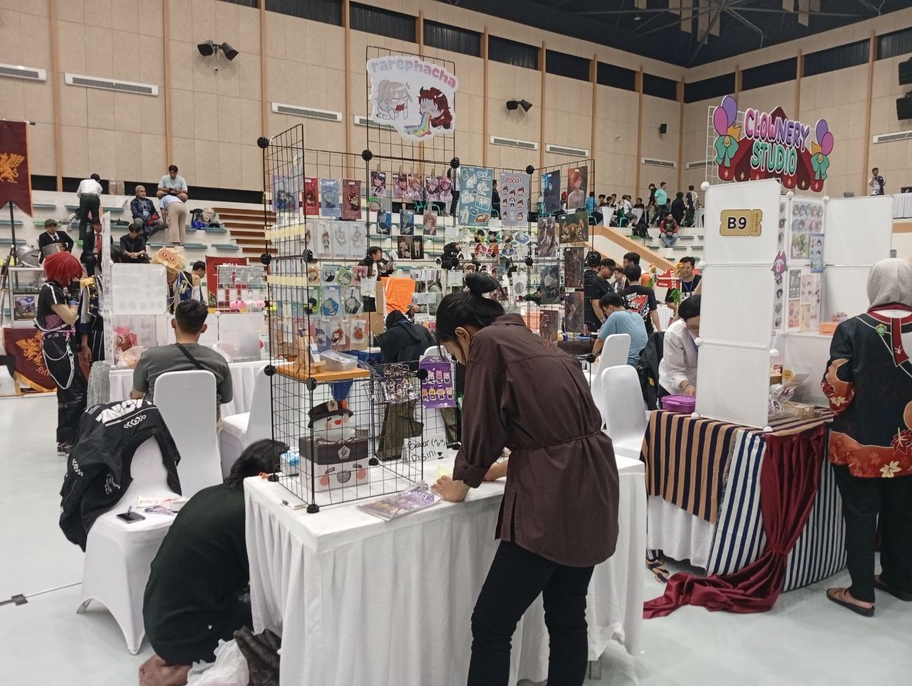 Seperti yang kami kunjungi di booth yang satu ini di B3, C3, dan C4 yang sama-sama masih satu circle dari kumpulan artist illustrator Kota Samarinda dari Komunitas Saturdraw Art. Saturdraw ini merupakan salah satu komunitas artist illustrator yang ada di Kota Samarinda yang sering berkumpul dan latihan menggambar bareng bersama, yang dilakukan rutin setiap hari Sabtu. Biasanya mereka suka berkumpul di Momo Cafe x Qia Studio yang terletak di jln Jakarta, Loa Bakung, kec Sungai Kunjang. Rencananya nanti, mereka juga sedang mencari tempat baru yang lebih strategis untuk bisa dapat mengumpulkan anggotanya yang jauh dari jarak rumah.