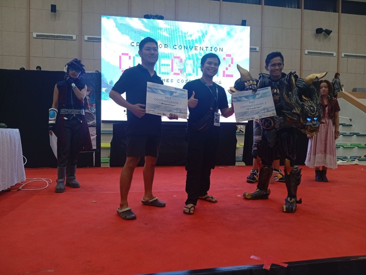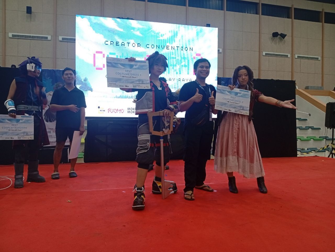Akhirnya dari ke 100 peserta ini terdapat 5 pemenang untuk 1 Best Cosplay Favorite, 2 Best Costume dan 2 Best Armor. Adapun pemenang dari lomba tersebut bisa kalian lihat di bawah ini, ada cosplayer dari karakter Fang Boboiboy, Sora Kingdom Heart, GARO, dan Aeris Final Fantasy.