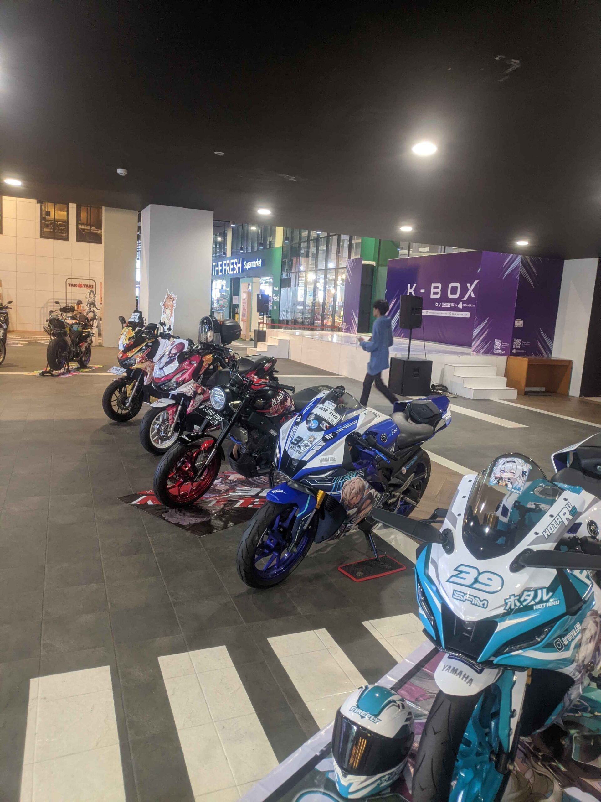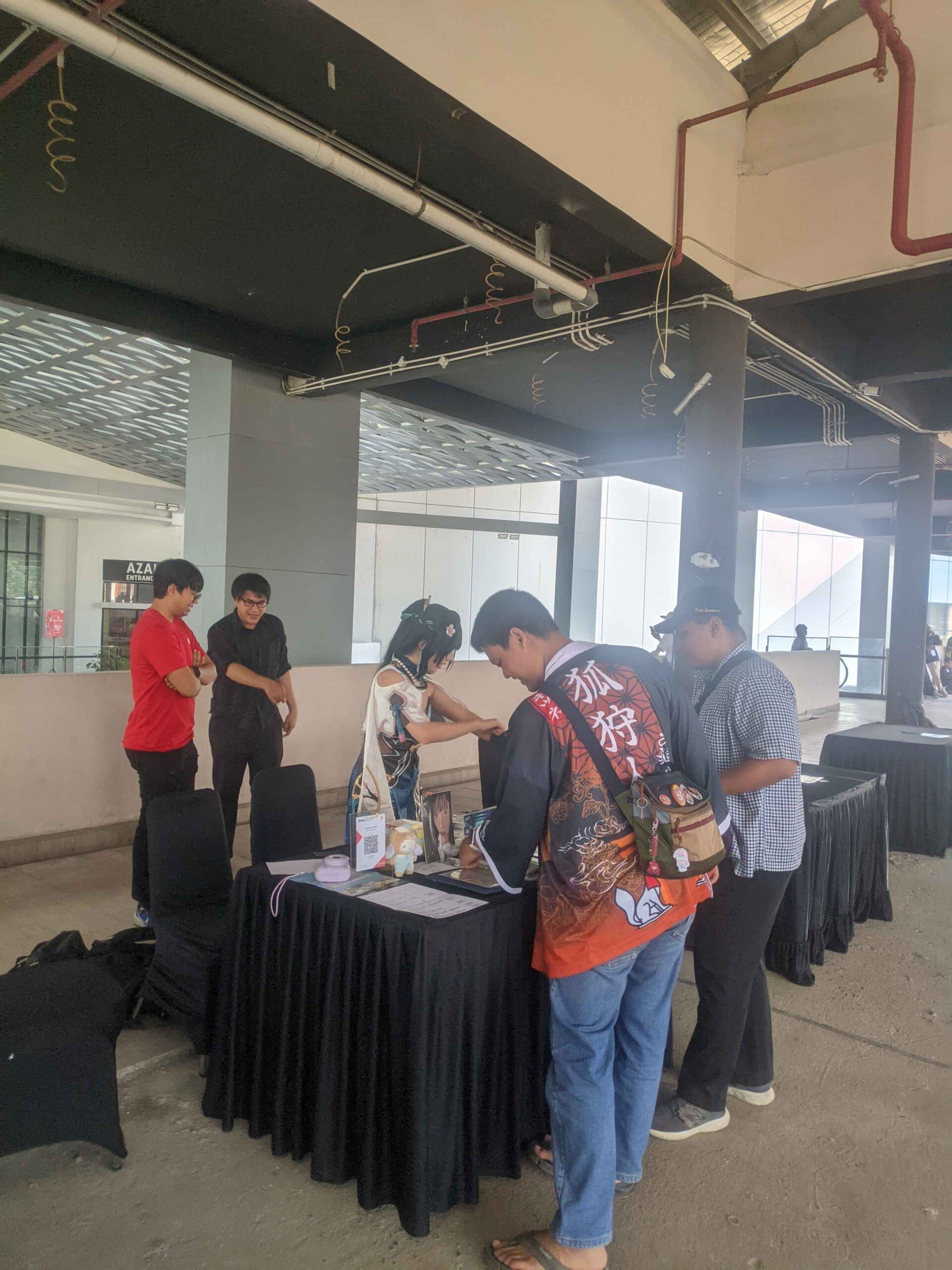 Di area event, terdapat berbagai booth komunitas yang meramaikan acaranya. Salah satunya adalah booth para Cosplayer dan grup idol lokal (chika idol) yang menjual berbagai merchandise seperti photocard, poster, dan cheki (sesi foto menggunakan kamera Polaroid). Ada juga booth itasha yang menarik perhatian dengan deretan mobil dan motor yang dihias karakter anime, game bahkan vtuber ataupun vsinger favorit mereka, menjadikan area ini terasa seperti galeri otomotif bertema anime.