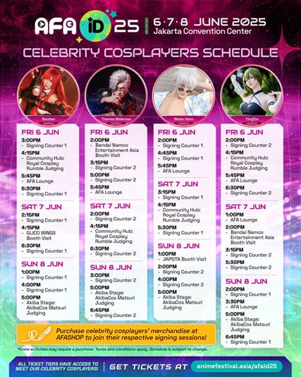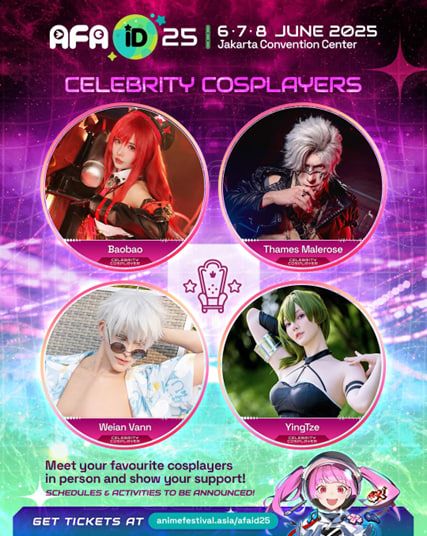 Melanjutkan warisan Anime Festival Asia dalam menghadirkan pengalaman luar biasa bagi penggemar di seluruh Asia Tenggara, AFAID25 siap menjadi acara spektakuler berikutnya. Bersiaplah untuk kesempatan luar biasa bertemu dengan sesama penggemar, menikmati budaya pop Jepang secara mendalam, serta menciptakan kenangan yang tak terlupakan sepanjang hidup!