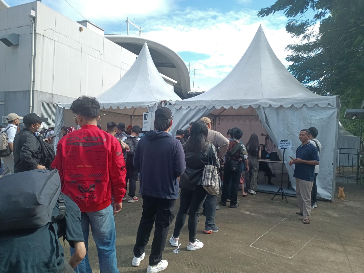 Para pengunjung yang telah menukar tiket kemudian mengantri di depan area Hall 10 ICE BSD. Berbeda dengan sebelumnya, area pre-function alias selasar di depan Hall 10 kini juga dipakai sebagai area tunggu antrian masuk Comifuro XX. Sehingga para pengunjung yang sudah mengantri sejak subuh kini bisa menunggu open gate tanpa perlu ber-panas-panasan di luar ICE BSD.