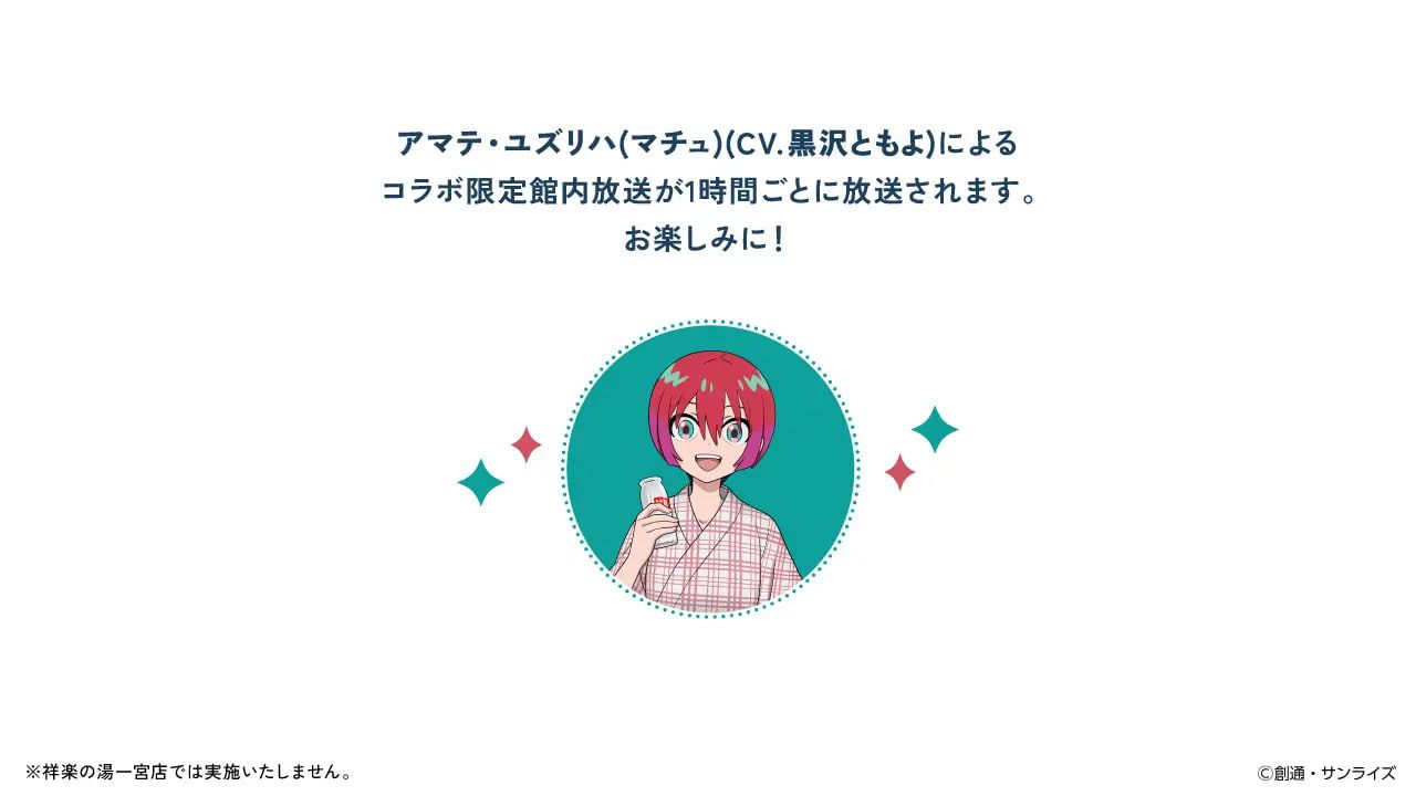 Setiap beberapa hari, pemandian akan berubah tema sesuai karakter dari Gundam GQuuuuuuX seperti Machu, Nyaan, Shuuji, Chalia, hingga Xavier. Kalian bisa merasakan atmosfer mandi yang didesain khusus berdasarkan kepribadian dan warna khas tiap karakter, lengkap dengan tatanan visual yang memanjakan mata.